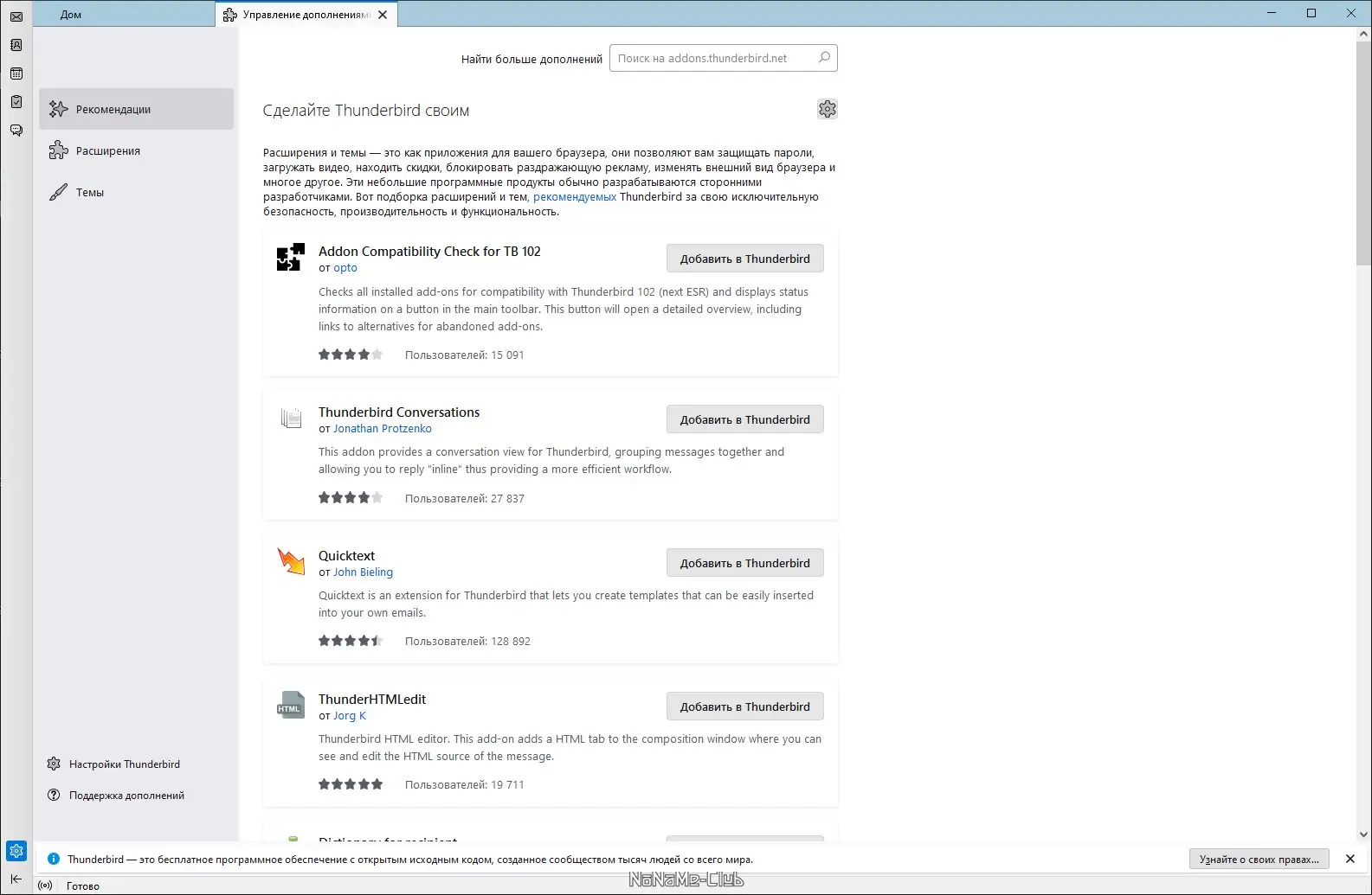 Mozilla Thunderbird — это современное приложение для работы с электронной почтой, разработанное с учетом требований безопасности и удобства пользователя. Оно обладает интуитивным интерфейсом, множеством настроек и поддержкой расширений, что позволяет адаптировать его под любые нужды. Программа обеспечивает лёгкую настройку аккаунтов, интеграцию с адресной книгой и возможность работы с несколькими учетными записями одновременно. Благодаря мощнейшему спам-фильтру и автоматической проверке обновлений, Thunderbird обеспечивает надежную защиту и всегда остается актуальным решением для почтовых нужд.