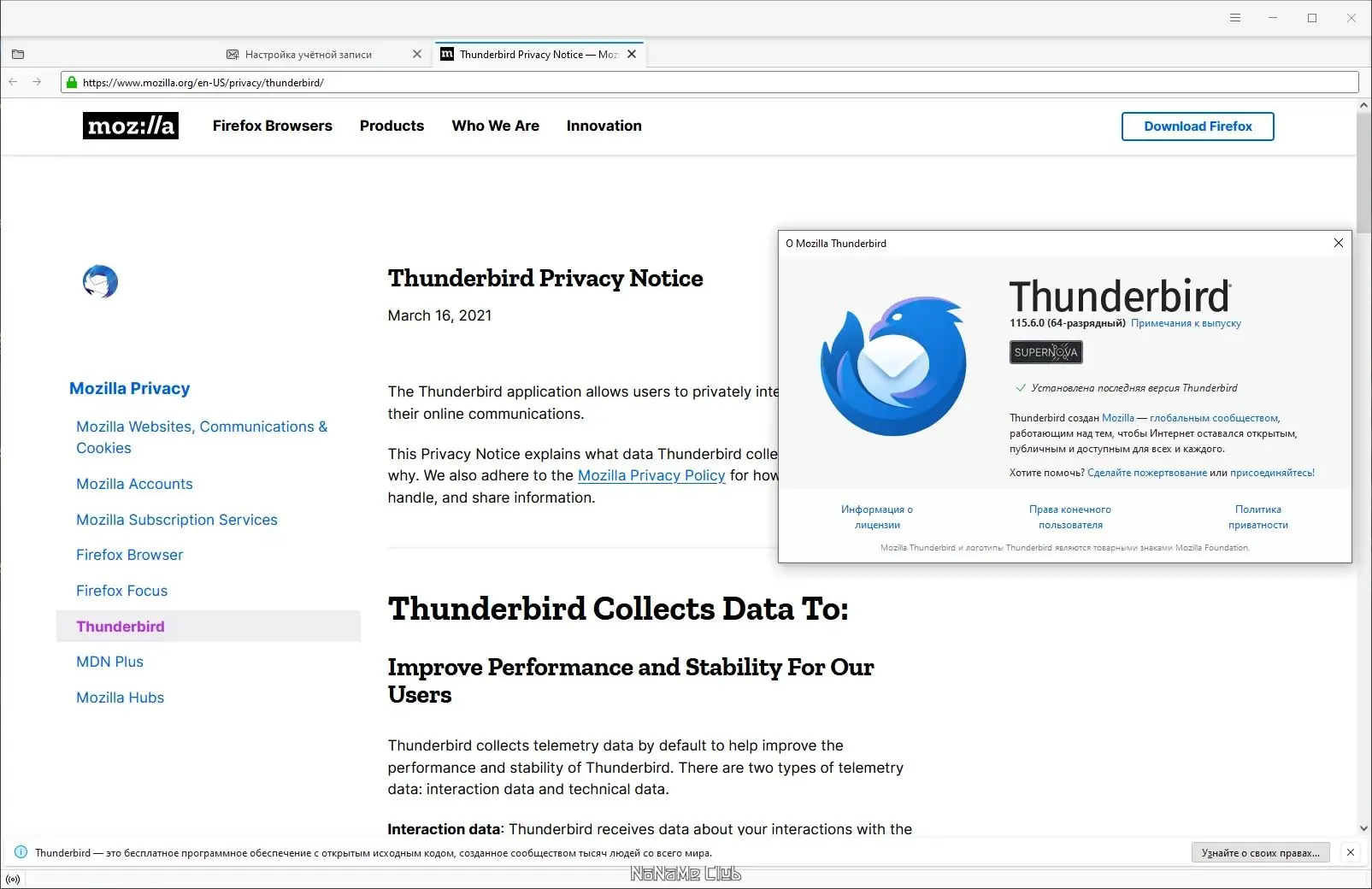 Mozilla Thunderbird — бесплатная, легкая и безопасная программа для работы с электронной почтой, которая помогает удобно управлять письмами, контактами и папками, а также обеспечивает высокий уровень защиты от спама и вредоносных сообщений.