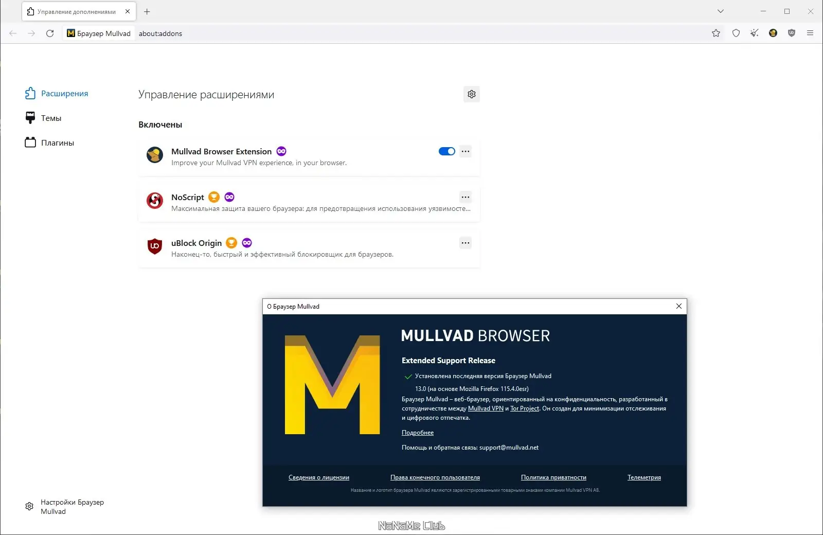 - Встроенные дополнения NoScript и Ublock Origin для защиты от вредоносных скриптов и рекламы.