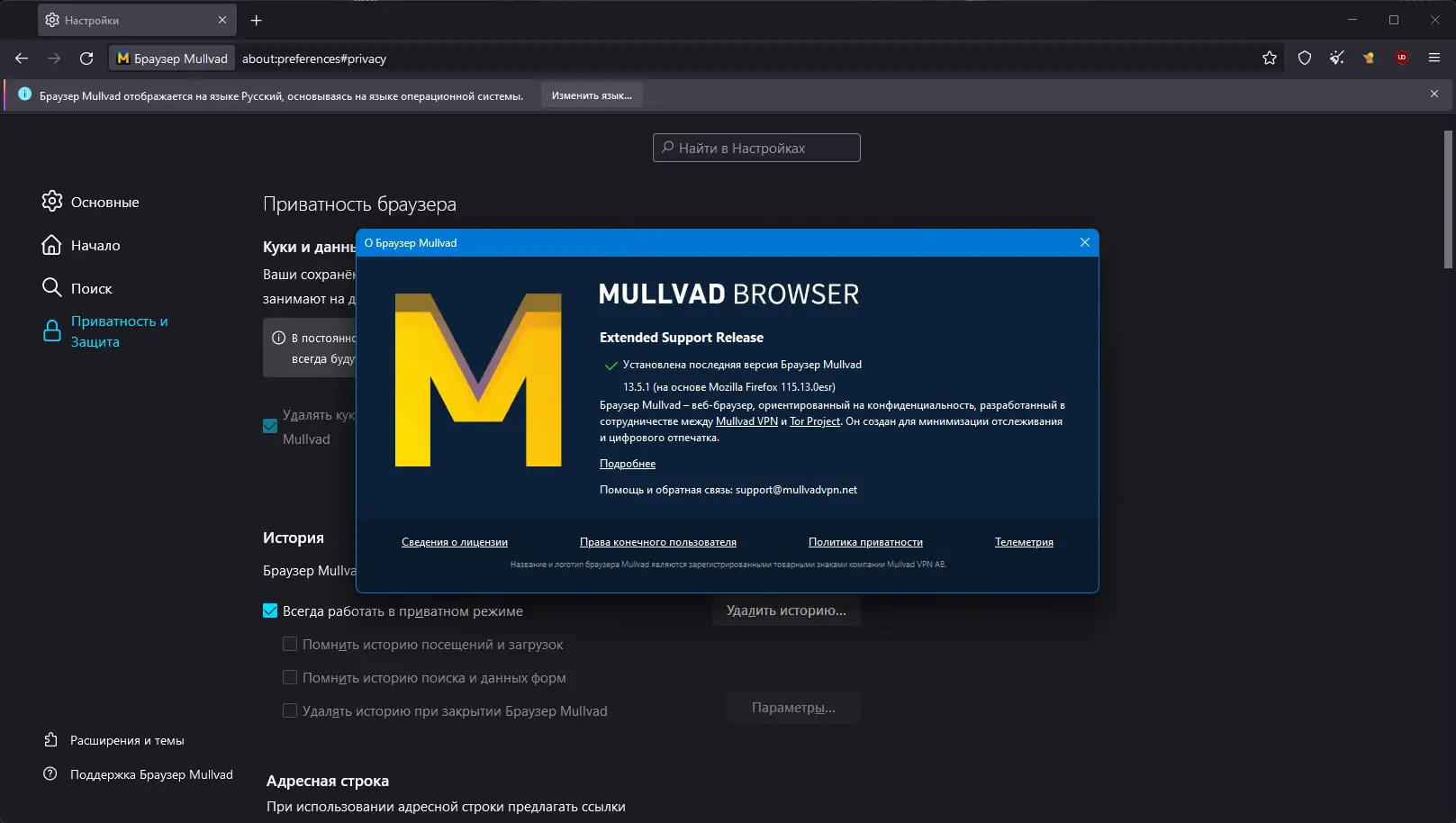 Мощный браузер, предназначенный для повышения конфиденциальности интернета без необходимости использования сети Tor, основанный на движке Firefox ESR.