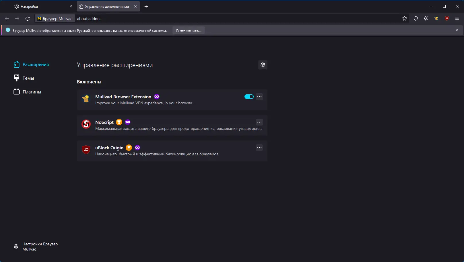 - Интегрированные дополнения NoScript и Ublock Origin для снижения угроз и блокировки рекламы.