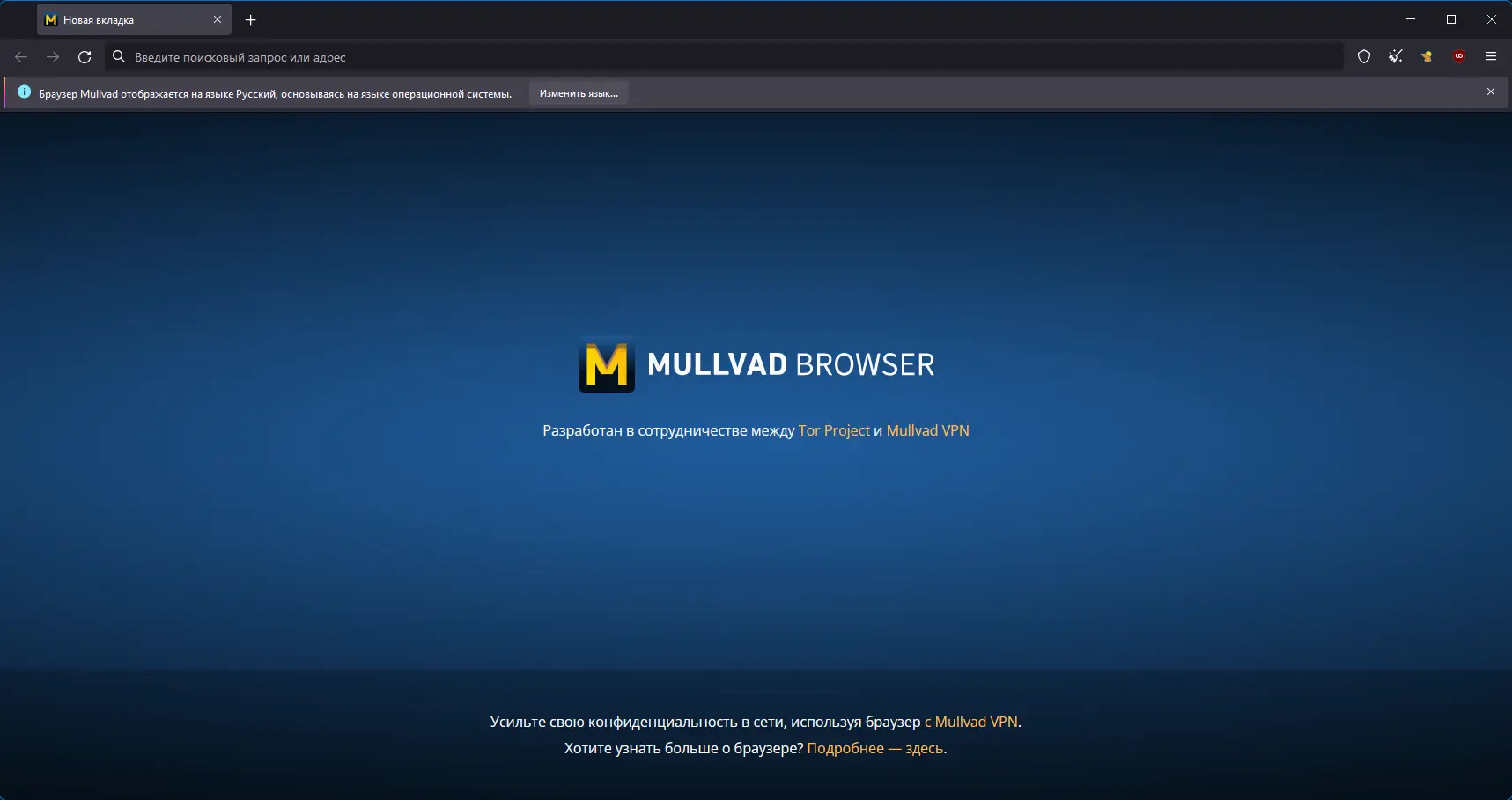 - Запустить файл Mullvad Browser.exe для начала использования.