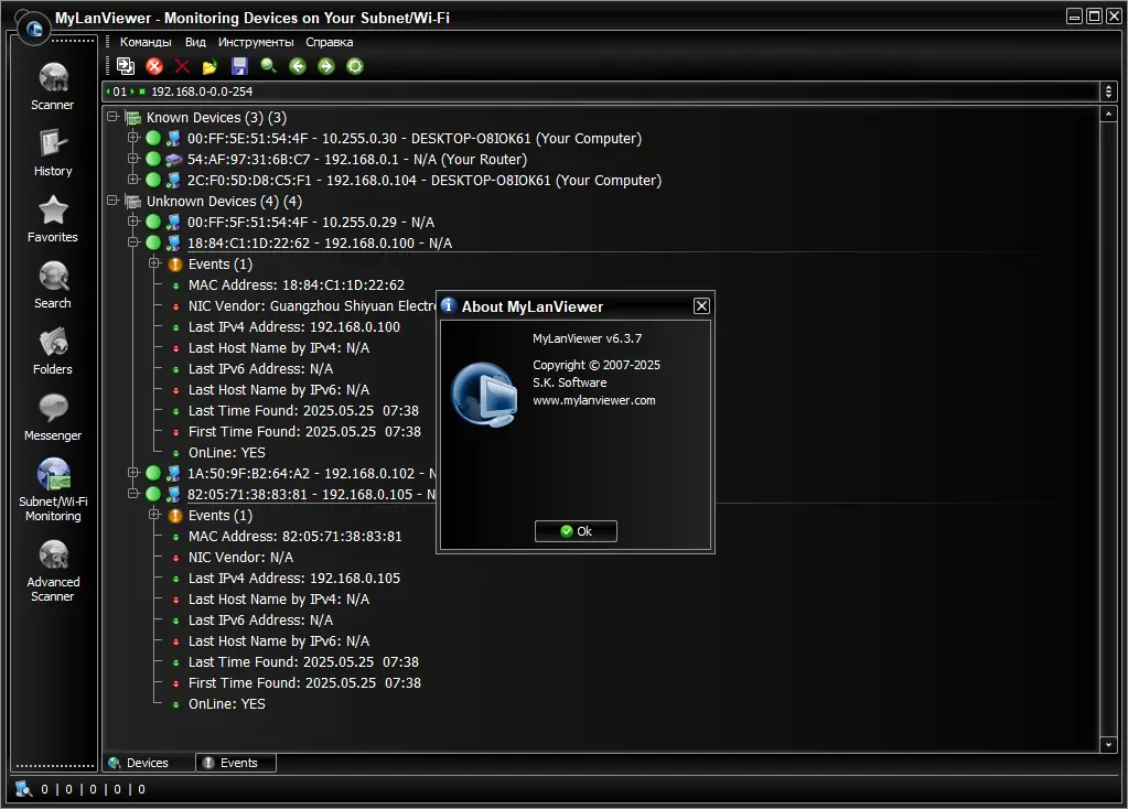 Данная утилита предназначена для быстрого и эффективного обзора сети, отображая список компьютеров с их именами, IP-адресами, MAC-адресами и общими ресурсами. Благодаря многопоточному сканированию, программа обеспечивает высокую скорость обнаружения устройств, а автоматическое регулярное сканирование позволяет держать сеть под контролем без постоянного вмешательства пользователя. Возможность поиска по различным протоколам, от ICMP до NetBIOS, расширяет функциональность. Пользователи могут находить файлы в общих папках, управлять ресурсами и получать уведомления о статусе устройств. Реализован механизм сохранения отчетов и истории для последующего анализа.