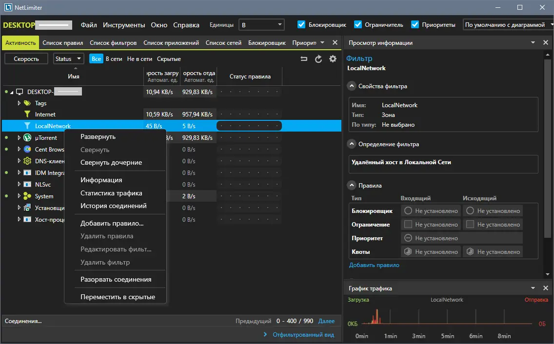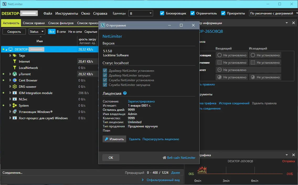 NetLimiter — это мощное решение для контроля сетевого трафика на компьютере с Windows. Оно позволяет отслеживать активность каждого приложения, использующего интернет, а также управлять его нагрузкой, регулируя скорость загрузки и отправки данных. Благодаря этому пользователь получает возможность ограничивать чрезмерное использование ресурсов сетью и предотвращать нежелательное подключение программ к интернету.