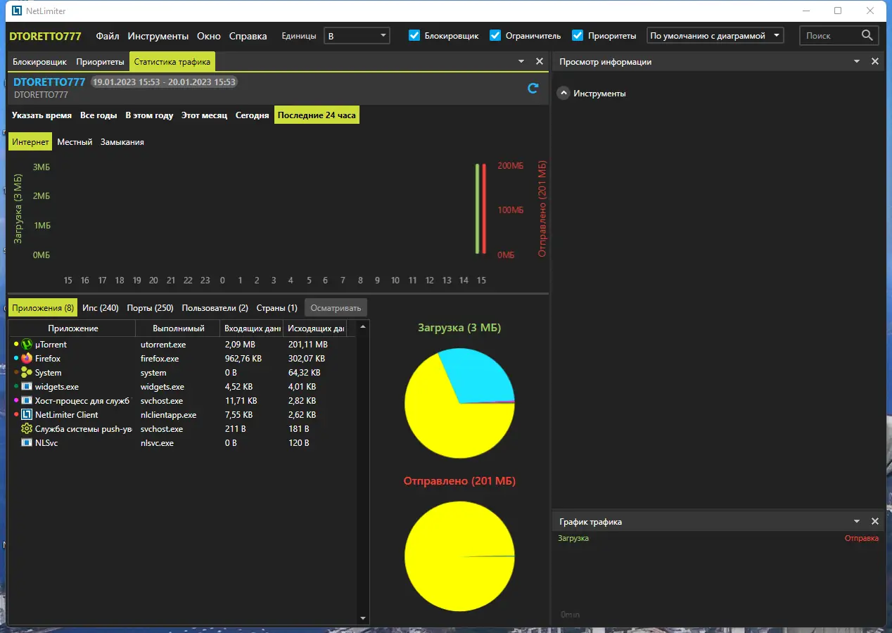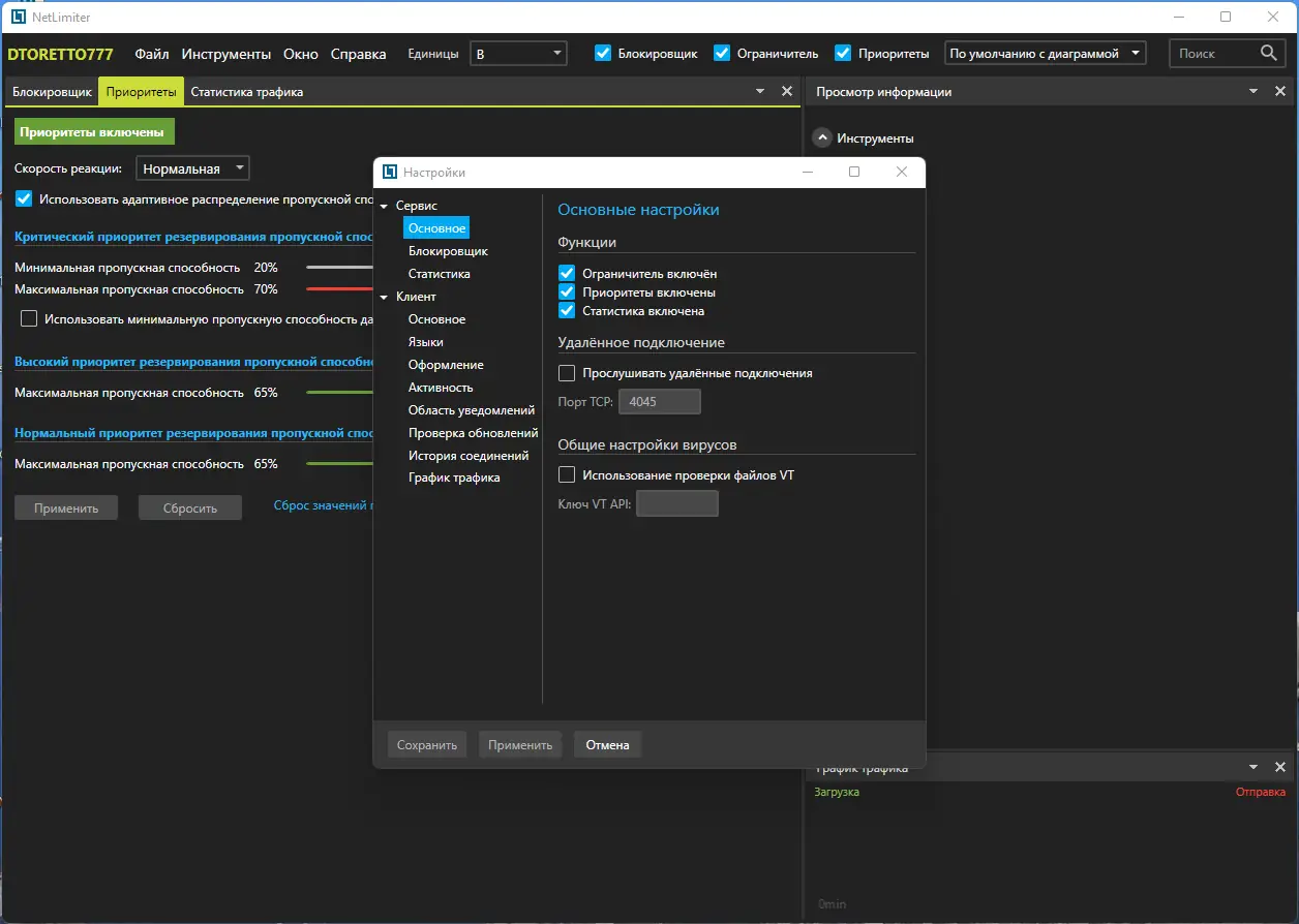 NetLimiter — это мощное решение для контроля сетевого трафика, позволяющее отслеживать деятельность каждого приложения или соединения, использующего доступ к Интернету. Программа дает возможность управлять скоростью передачи данных, устанавливать лимиты и приоритеты для различных приложений, а также вести подробную статистику использования сети. Благодаря интуитивно понятному интерфейсу и расширенным настройкам, пользователи могут эффективно регулировать сетевую активность и предотвращать чрезмерную нагрузку на ресурсы ПК.
