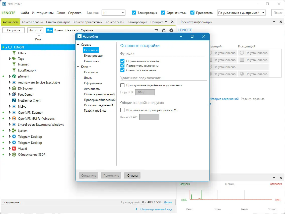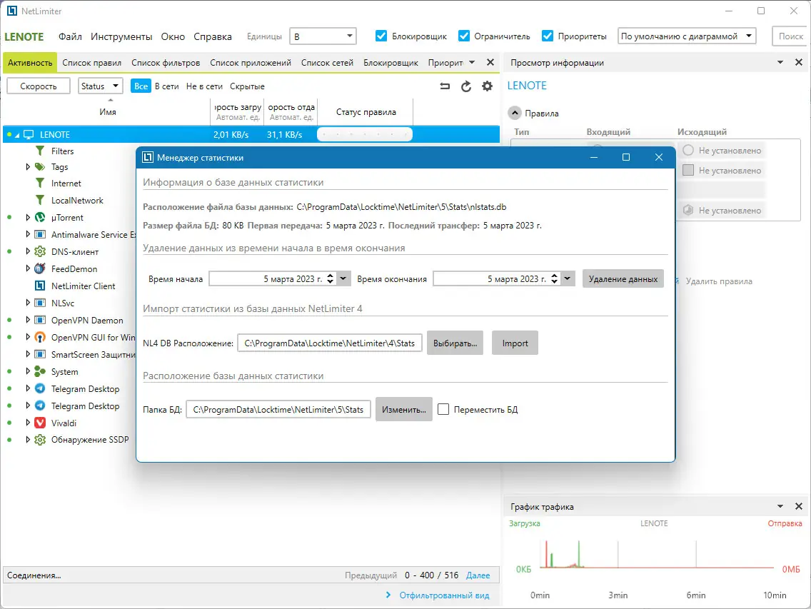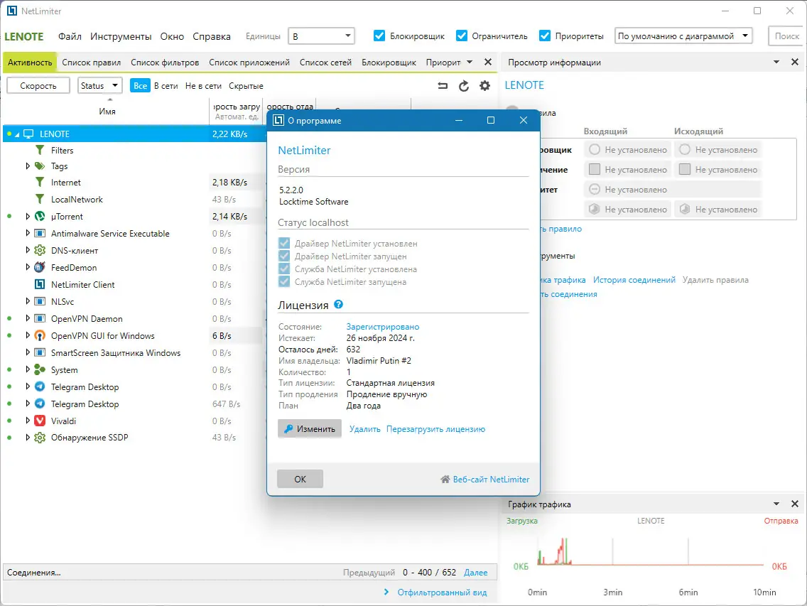 NetLimiter — простая и мощная программа для контроля сетевого трафика. Она позволяет отслеживать, управлять и ограничивать использование интернета каждым приложением на компьютере, обеспечивая полную гибкость и безопасность работы в сети.