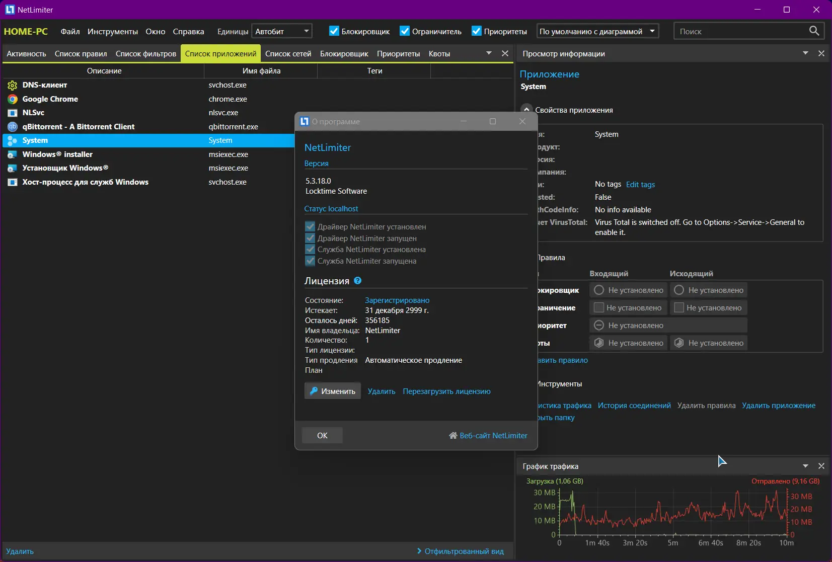 NetLimiter — это мощное решение для контроля сетевого трафика на ПК, позволяющее мониторить, управлять и ограничивать использование Интернета отдельными приложениями. Программа следит за деятельностью каждого запущенного на компьютере приложения, регулируя скорость передачи данных и предоставляя подробную статистику по соединениям. Благодаря этому можно эффективнее распределять сетевые ресурсы, останавливать нежелательный трафик и предотвращать чрезмерное потребление полосы пропускания.
