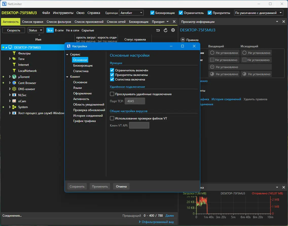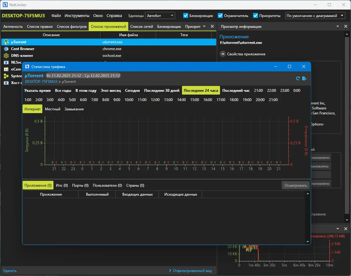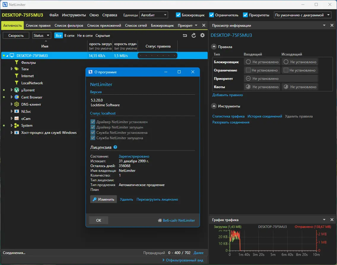 NetLimiter — это мощная программа для контроля и управления сетевым трафиком на вашем компьютере, предоставляющая детальный анализ и настройку подключения приложений к Интернету.