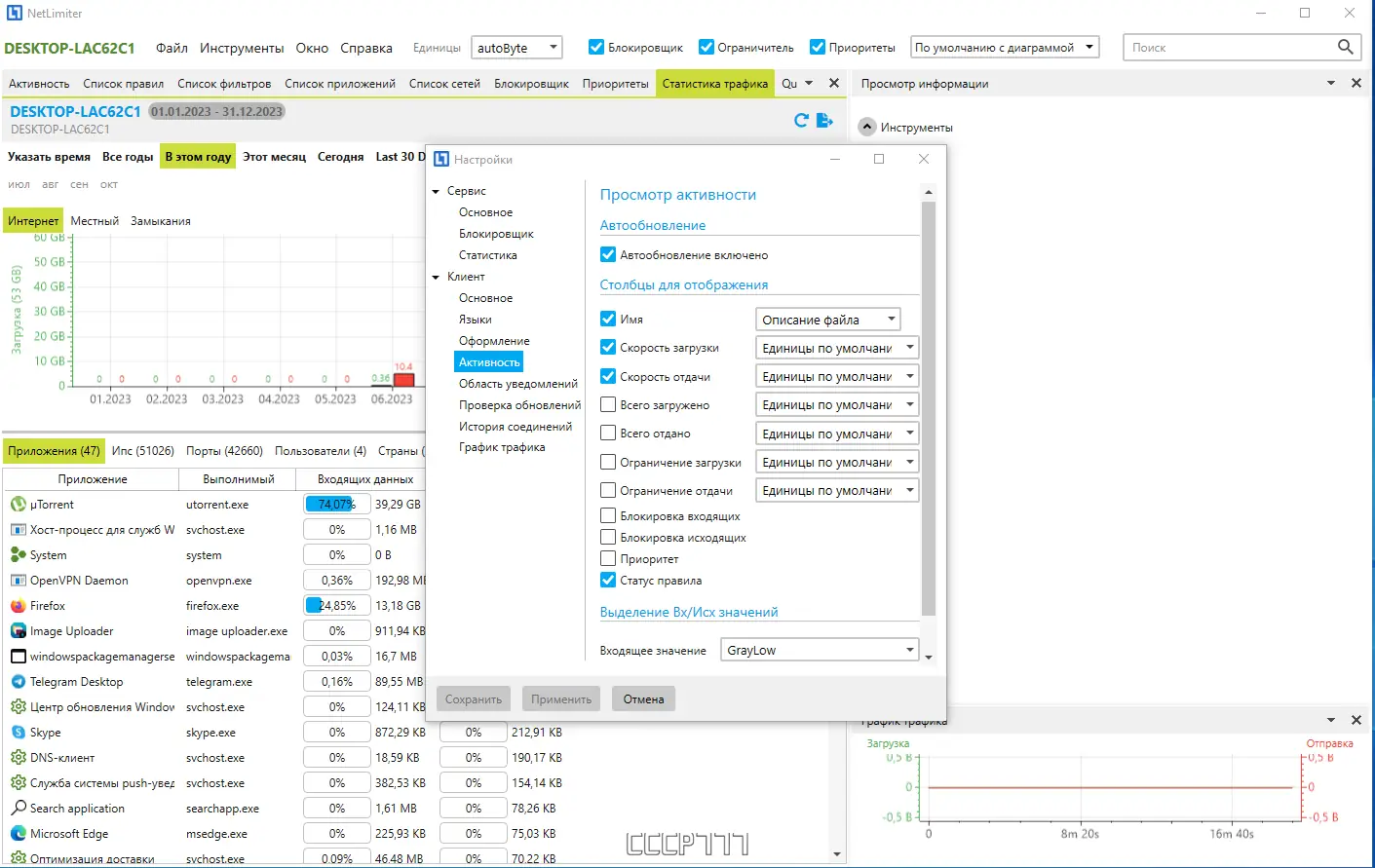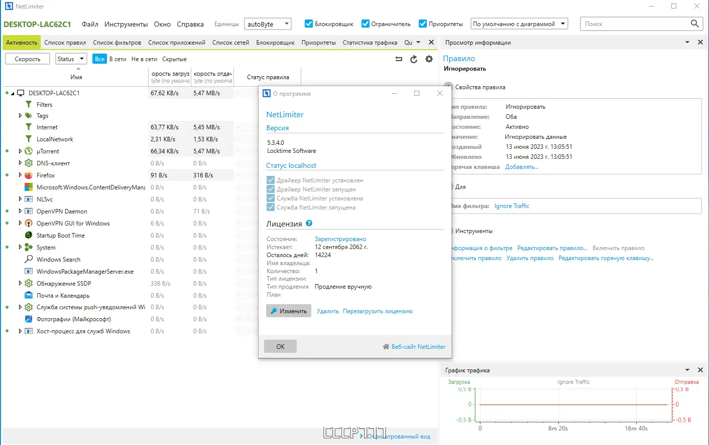 NetLimiter — мощная программа для контроля и управления сетевым трафиком, которая позволяет отслеживать использование Интернета каждым приложением и настраивать параметры передачи данных.