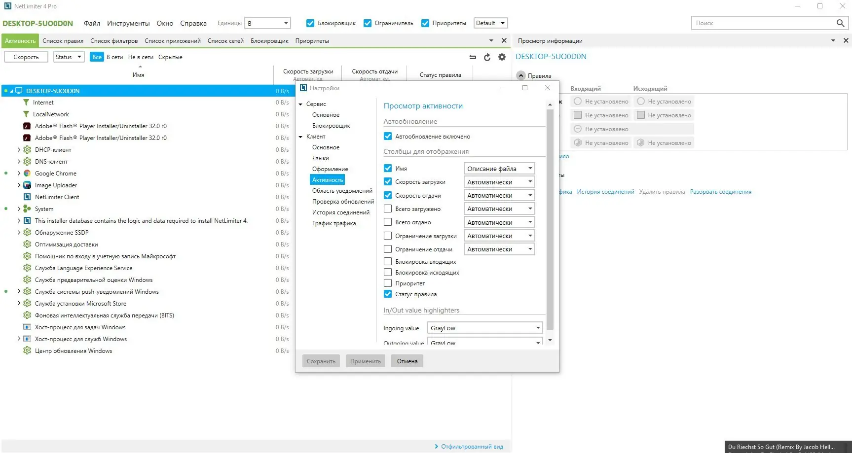 NetLimiter — это универсальная утилита, предназначенная для сбора статистики об интернет-трафике, создаваемом любыми программами, а также для контроля сетевой активности. Она позволяет выставлять ограничения на скорости скачивания и закачки для каждого приложения или соединения, что значительно повышает управляемость интернет-ресурсами. Благодаря детальной статистике, программа дает возможность отслеживать сетевую активность в реальном времени или за выбранный промежуток времени, позволяя принимать обоснованные решения по оптимизации трафика.
