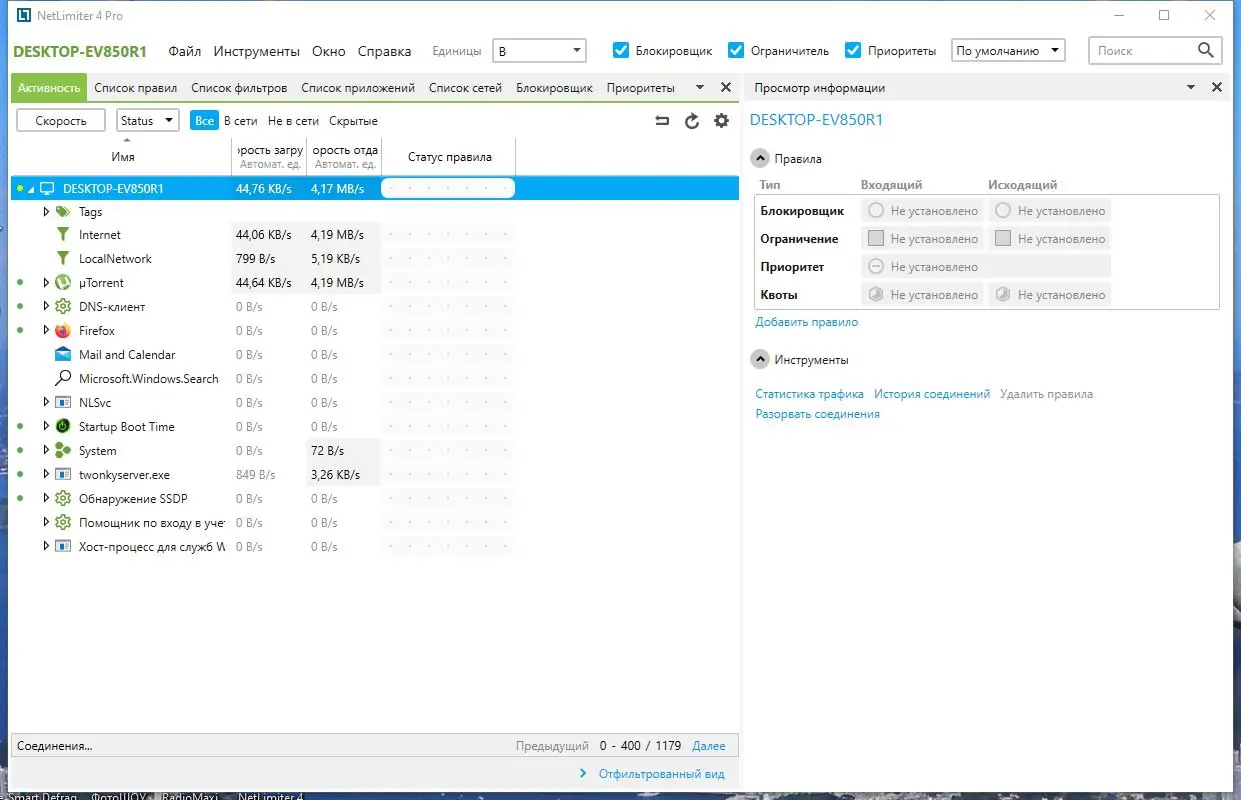 NetLimiter — это инструмент, созданный для определения, анализа и ограничения сетевого трафика, генерируемого любыми программами на ПК. Его функциональные возможности включают сбор статистики использования интернет-соединения как в текущий момент, так и за произвольный промежуток времени. Утилита позволяет выставлять ограничения на скорости скачивания и закачки для каждого приложения или конкретного соединения, что особенно важно для соблюдения лимитов трафика и повышения скорости работы сети. Благодаря детальному мониторингу, пользователь всегда будет знать, какая программа использует сетевые ресурсы, а при необходимости — блокировать доступ или приоритезировать трафик.