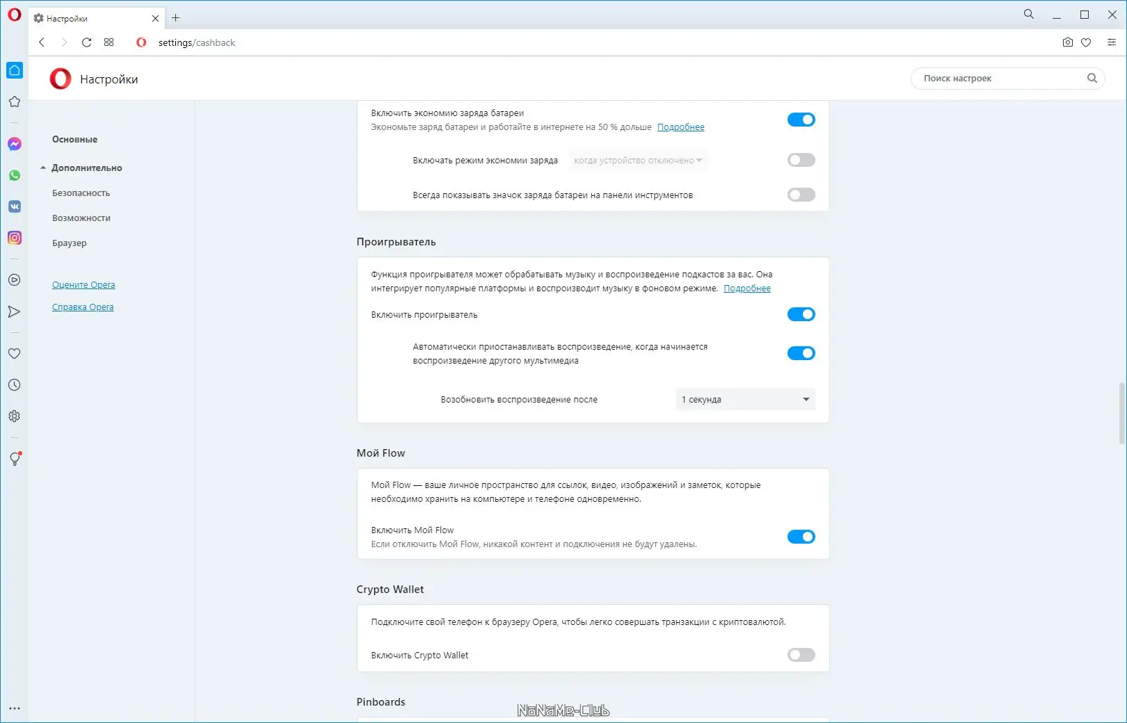 Дополнительно | Подключение к интернету для полноценной работы, наличие драйверов для расширений и VPN |