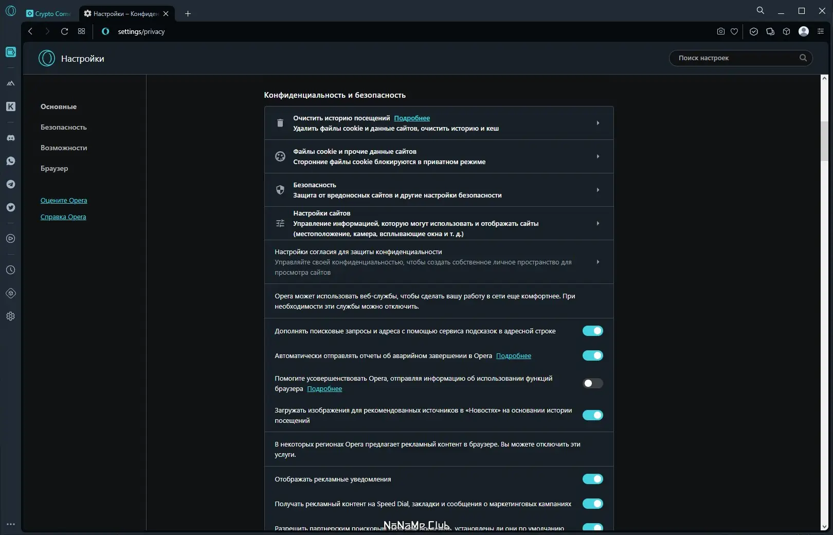Данный браузер оснащён технологиями, обеспечивающими работу с любыми сайтами, онлайн-сервисами и веб-приложениями, а особенность его заключается в поддержке Web3 — новейших функций интернета будущего. Встроенный крипто-кошелек позволяет легко управлять своей криптовалютой и входить в децентрализованные приложения (dApps) без необходимости использовать сторонние платформы. Поддержка популярных блокчейнов, таких как Ethereum, Bitcoin, Celo и Nervos, делает операцию с криптовалютой максимально удобной и безопасной. Браузер также включает безопасный буфер обмена, интегрированные блокировщики рекламы и безлимитный VPN, а стартовая страница Cripto Corner предоставляет актуальные курсы криптовалют, новости, календарь отраслевых событий и другую полезную информацию.
