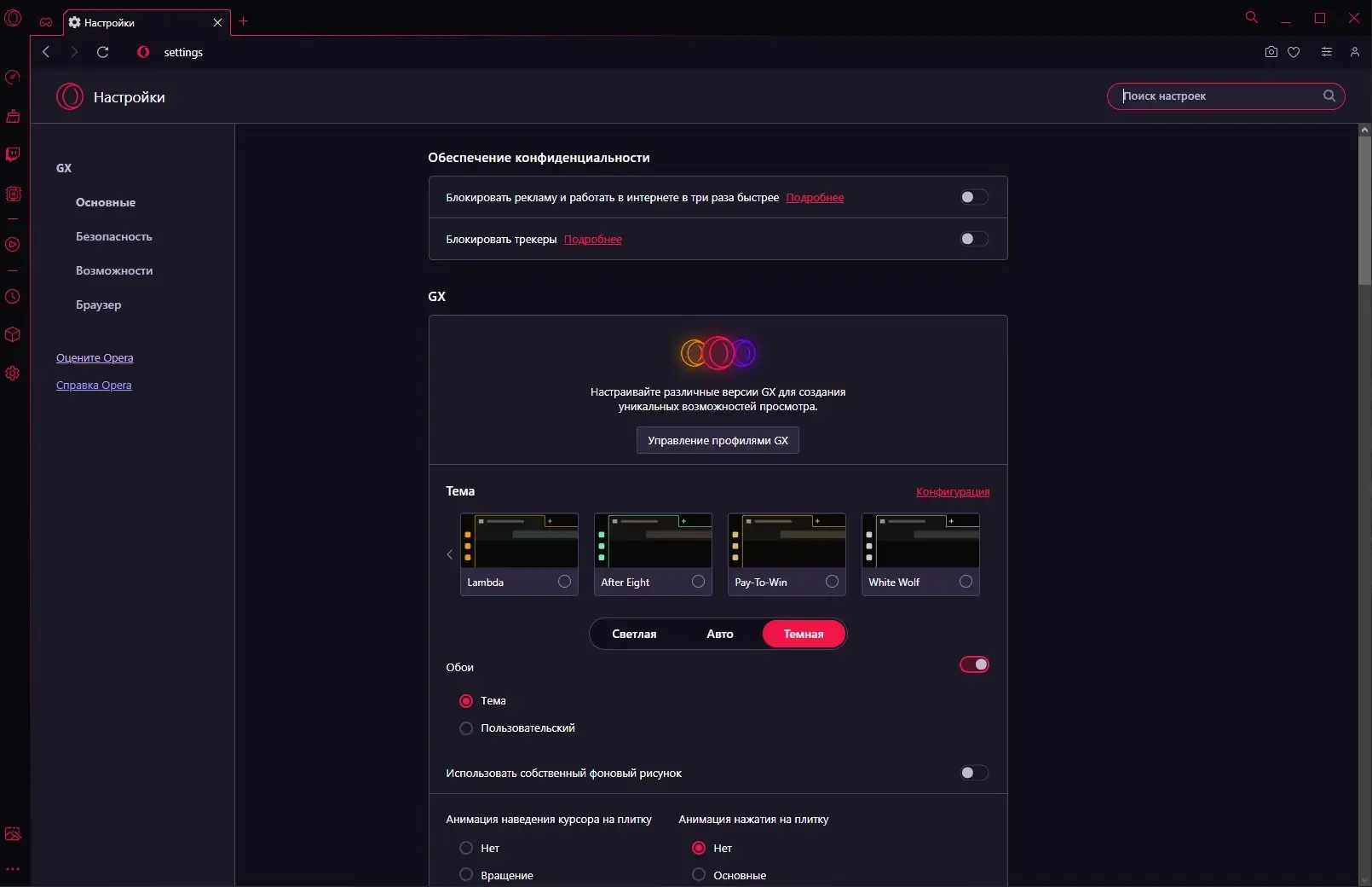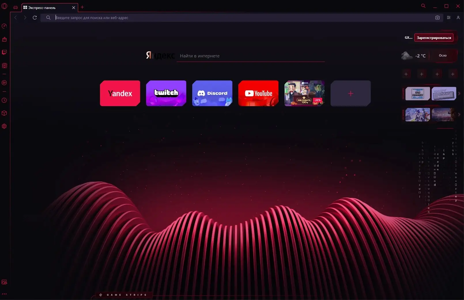 Opera GX — это версия популярного браузера Opera, разработанная с учетом потребностей геймеров. Она объединяет максимально удобный интерфейс и расширенные возможности по настройке внешнего вида и функциональности, позволяя пользователю получить максимум от просмотра веб-страниц и игр. В этой версии реализованы оригинальные элементы интерфейса, такие как разделительные линии, границы кнопок и иконки, а также возможность настройки цветовой схемы как в обычном, так и в расширенном режиме с полной палитрой цветов. Недавно разработчики вернули функцию выбора светлой темы, что делает пользовательский опыт еще более гибким.