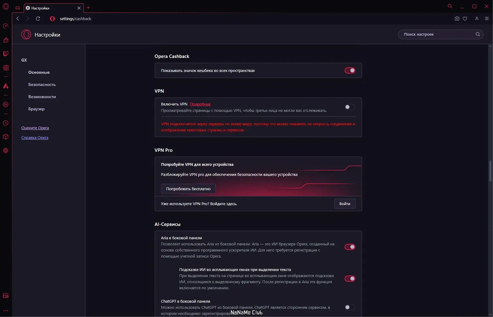 - GX CONTROL — управление использованием CPU и RAM, позволяющее держать браузер в режиме ресурсоэффективности, даже при запуске тяжелых игр или стримов.