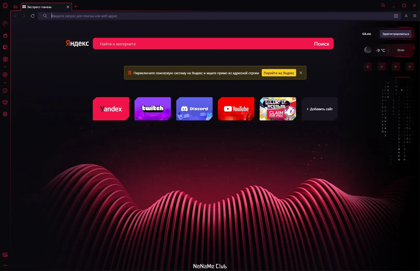 Opera GX — это специализированная версия браузера Opera, созданная для поддержки геймерского опыта. Он сочетает в себе мощные функции и удобство, позволяя пользователям получать максимум от игр и серфинга по интернету. Среди его особенностей — возможность индивидуальной настройки цветовой схемы, элементов интерфейса и встроенные инструменты для работы с популярными платформами видеостриминга и мессенджерами. Браузер включает встроенный VPN, блокировку рекламы и поддержку расширений как собственных, так и совместимых с магазином Chrome. Официальная версия поставляется бесплатно и доступна для установки как на Windows 7, так и на более новые системы с разрядностью x32/x64.