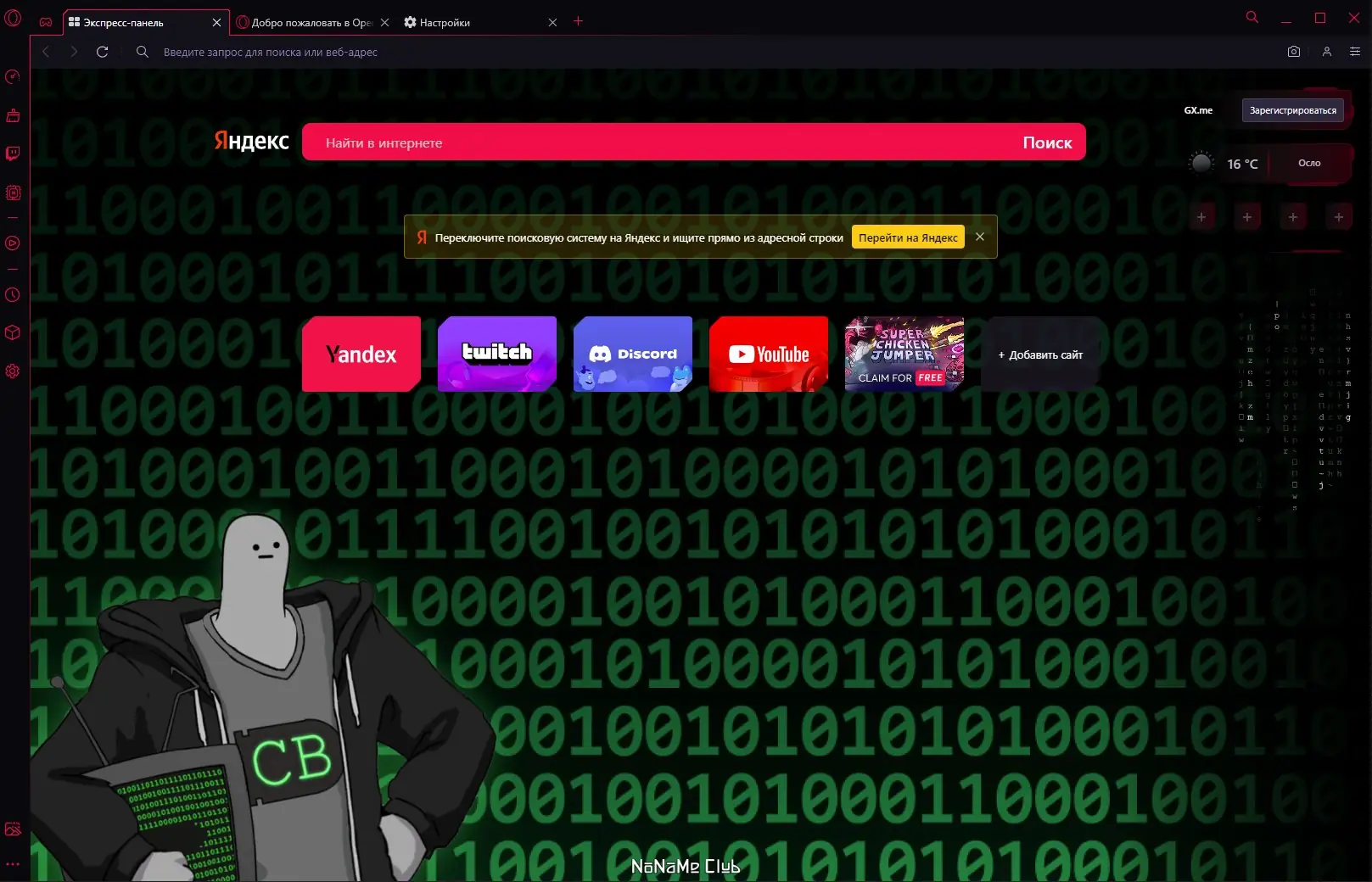 Это специальная версия браузера Opera, созданная для повышения эффективности и удобства использования во время игр и просмотра веб-страниц. Благодаря продвинутым настройкам дизайна, встроенным мессенджерам и функциям для блокировки рекламы, Opera GX предлагает полноценный опыт, объединяющий анимацию, звуковые эффекты и удобный интерфейс. В обновлённой версии появилась возможность настройки цветовой схемы и элементов интерфейса, что позволяет сделать браузер максимально персонализированным. Также реализована интеграция с Twitch, встроенный VPN, режим расширенной блокировки рекламы и всплывающее окно для видео.