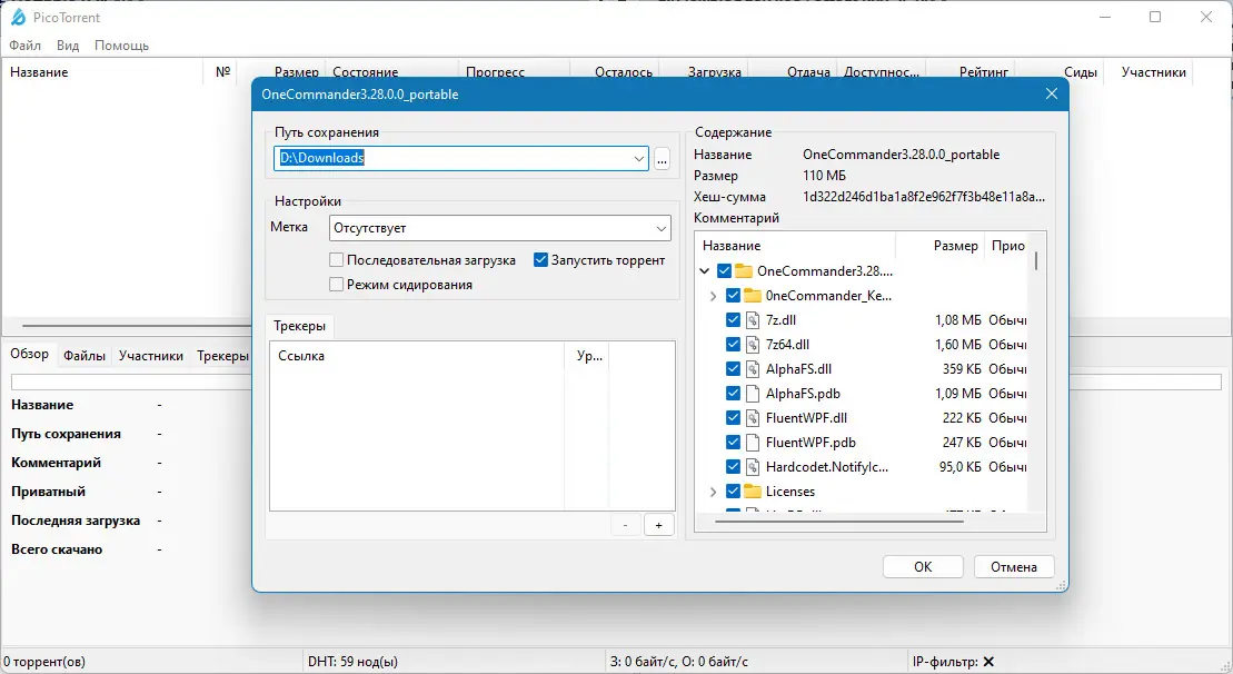 - Запустите исполняемый файл PicoTorrent для начала работы.
