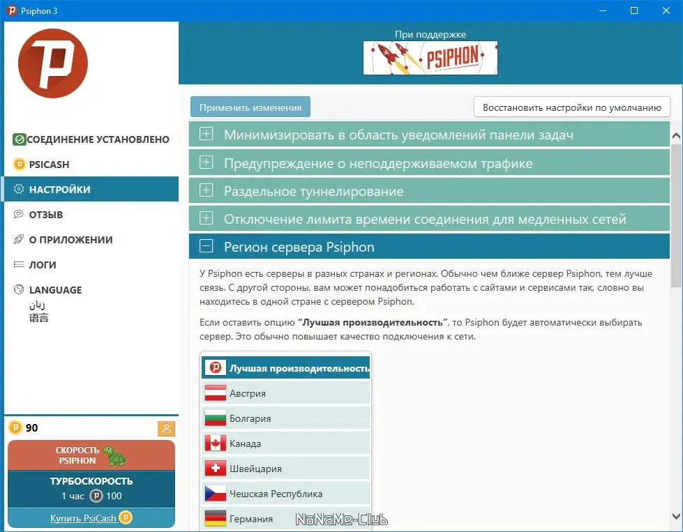 Это новое решение от Psiphon Inc. предназначено для автоматического обхода региональных ограничений в интернете с использованием технологий VPN, SSH и HTTP прокси. Клиент Psiphon автоматически обновляется и получает актуальные данные о новых серверах, что повышает шансы на успешный обход блокировок. Обратите внимание, что программа не предназначена для повышения уровня конфиденциальности или обеспечения полной онлайн-безопасности, а лишь обеспечивает свободный доступ к нужным ресурсам.
