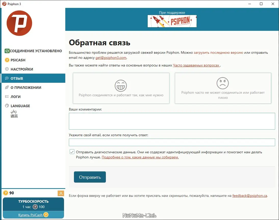 Обратите внимание, что Psiphon работает лишь как средство обхода цензуры и не предназначен для повышения уровня конфиденциальности или обеспечения полной защиты данных в интернете. Для этого рекомендуется использовать другие инструменты.