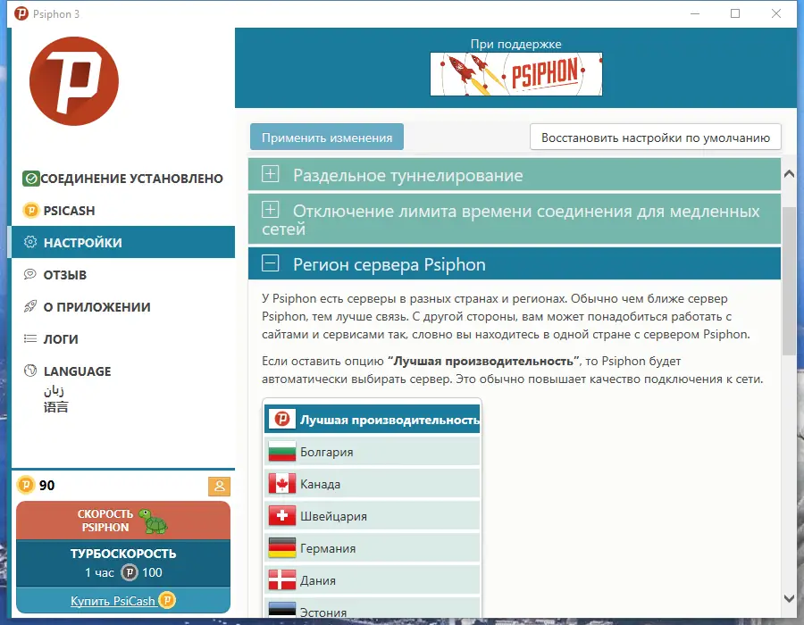 Обратите внимание, что для портативной версии настройки хранятся в папке «%APPDATA%\Psiphon3», что позволяет использовать программу без установки и сохранять конфигурацию между сессиями.