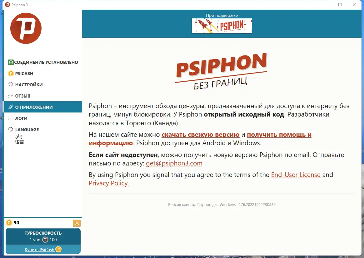 Обратите внимание, что при использовании портативной версии все настройки сохраняются в папке «%APPDATA%\Psiphon3», а при закрытии программы ваш IP-адрес автоматически восстанавливается.