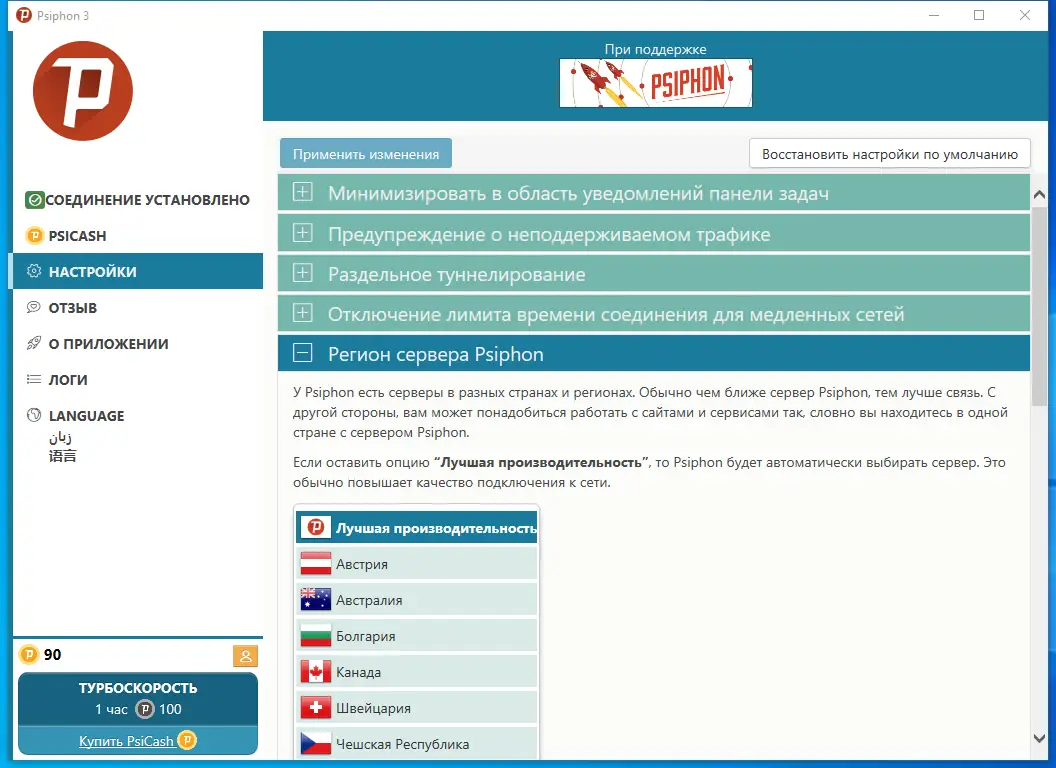 - Легкое подключение к иностранным серверам, обеспечивающее обход региональных ограничений.