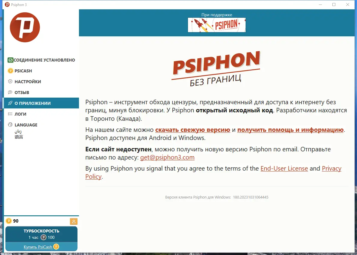 Psiphon — это современный инструмент для обхода региональных ограничений в интернете от компании Psiphon Inc. Он автоматически обновляет список своих серверов, повышая шансы на успешный доступ к заблокированным ресурсам. Программа предназначена для получения открытого доступа к онлайн-контенту, однако не обеспечивает дополнительной защиты конфиденциальности — использование рекомендуется с учетом этого. Совместим с разными версиями Windows, работает в портативном режиме и отличается простотой интерфейса.