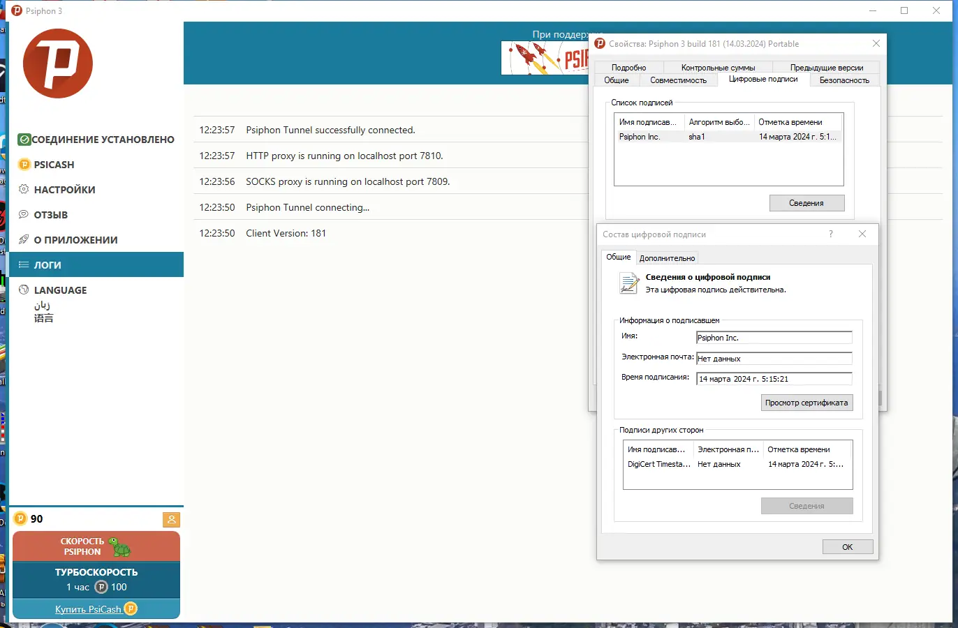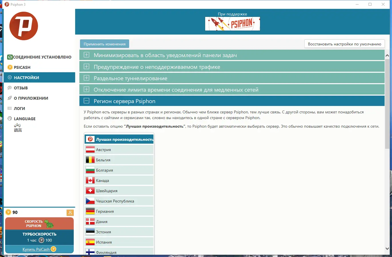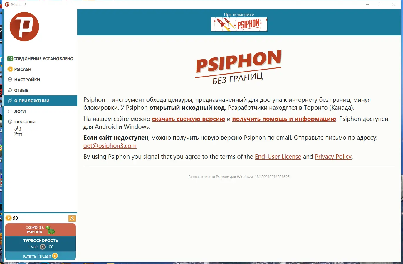Psiphon — это современный инструмент обхода ограничений в интернете, разработанный компанией Psiphon Inc.. Он автоматическим образом обновляет список доступных серверов, что повышает шансы на обход цензуры. Программа предназначена для обеспечения открытого доступа к онлайн-контенту, однако не гарантирует конфиденциальность и безопасность при использовании. Поддерживает работу на всех современных версиях Windows (7, 8/8.1, 10, 11; x32/x64 Bit). Интерфейс программы прост и удобен, что позволяет легко изменять настройки и подключаться к нужным серверам. Портативная версия позволяет запускать Psiphon без установки, сохраняя настройки в папке «%APPDATA%\Psiphon3».