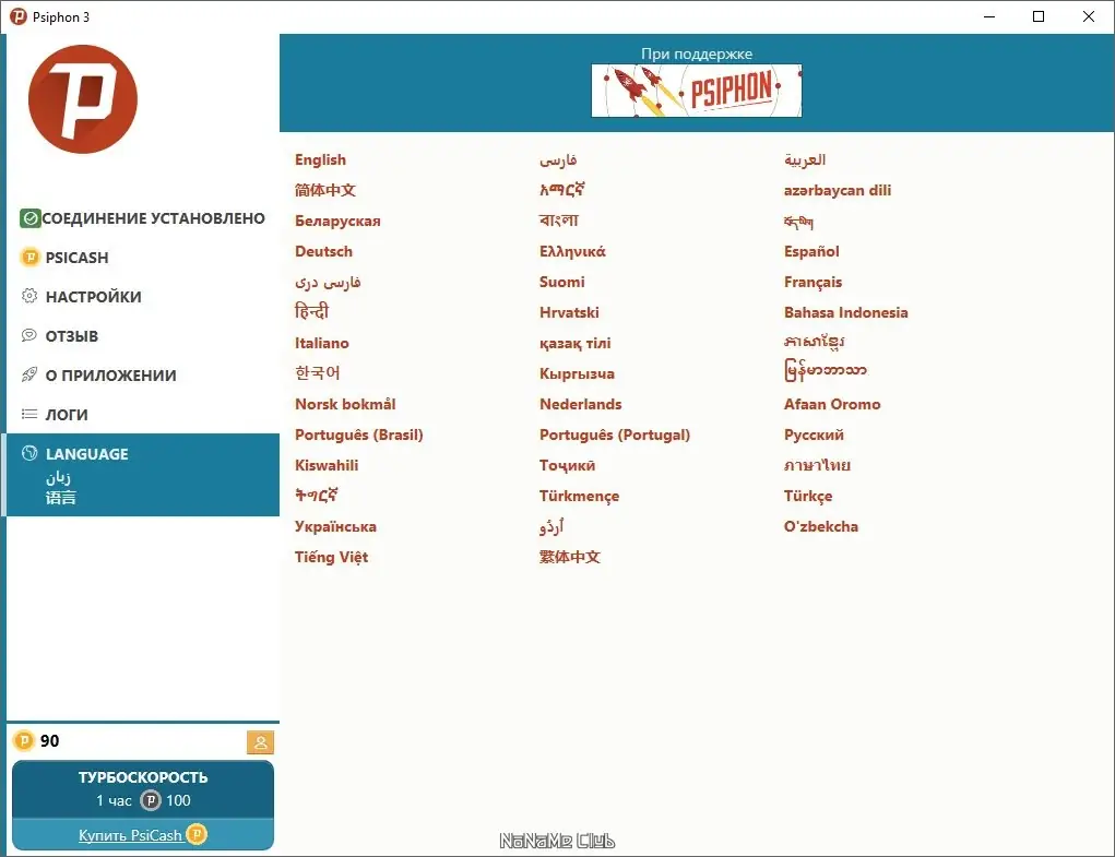 - При необходимости выбрать язык интерфейса и настроить параметры соединения.