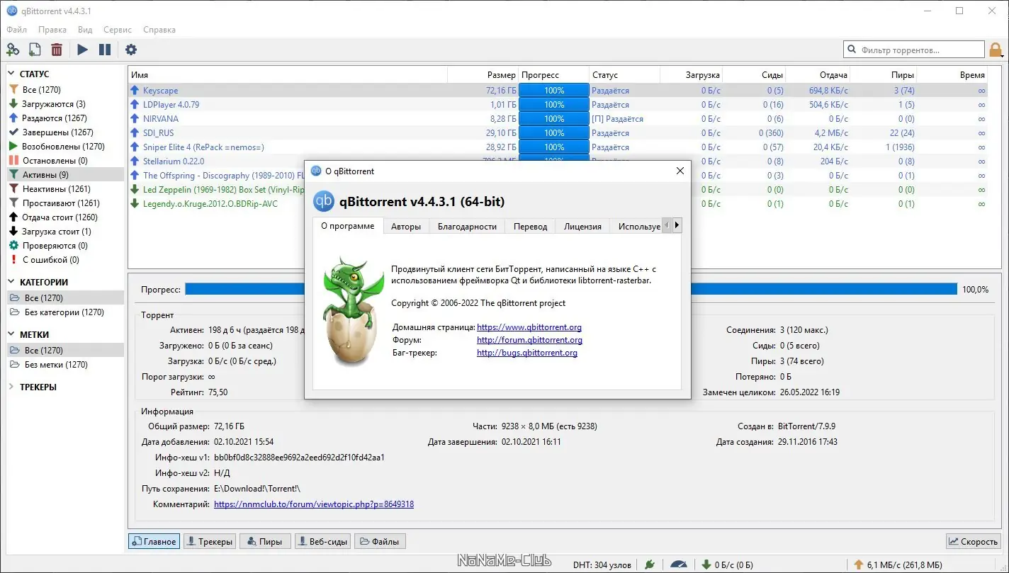 Это универсальный торрент-клиент, написанный на языке C++ и основанный на библиотеке libtorrent-rasterbar. Благодаря интегрированной поисковой системе, расширяемой с помощью плагинов, и поддержке всех популярных расширений BitTorrent, программа обеспечивает полный контроль над процессом скачивания. Реализована поддержка функций, таких как UPnP/NAT-PMP, шифрование, обмен трекерами и мультитрекеры, Web seed и создание собственных торрент-файлов. Пользователи могут управлять скачиваниями удаленно через встроенный веб-интерфейс или использовать расширенные фильтры по содержимому и меткам. Возможна настройка приоритезации файлов внутри торрента и использования IP-фильтров для повышения безопасности. qBittorrent работает на различных операционных системах, включая Windows 7 и новее, Linux, OS X и другие платформы, что делает его универсальным решением для скачивания через торрент.
