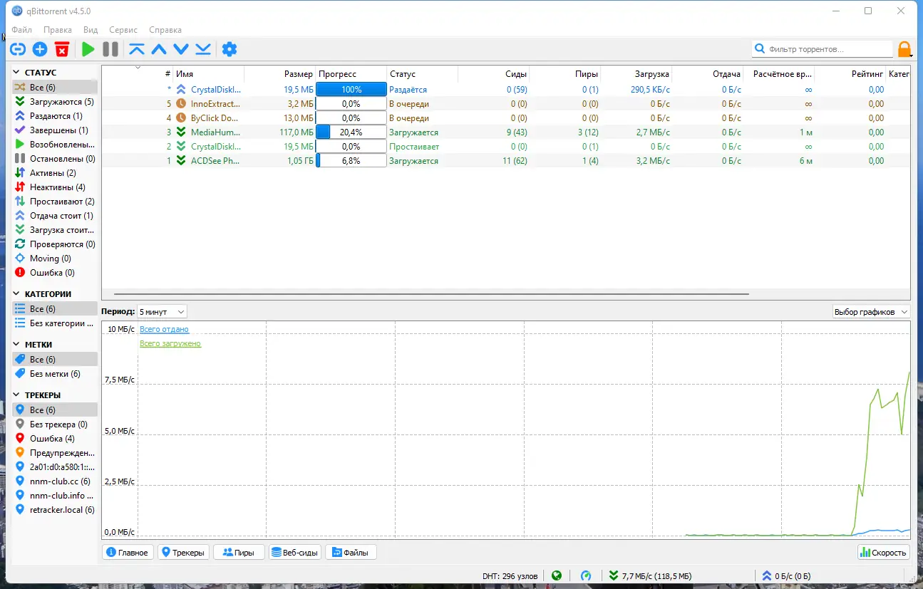 qBittorrent — это абсолютно бесплатное решение для загрузки и раздачи торрент-файлов, написанное на языке C++ с использованием библиотеки libtorrent-rasterbar и графического интерфейса на Qt. Несмотря на кажущуюся простоту, она обладает внушительным набором функций, включая интегрированную поисковую систему, поддержку всех популярных торрент-расширений, расширенные инструменты фильтрации и контроль за скоростью. Программа совместима с операционными системами Windows 7, 8/8.1, 10, 11, а также с Linux, OS X, OS/2 и FreeBSD, что обеспечивает её кроссплатформенность и универсальность.