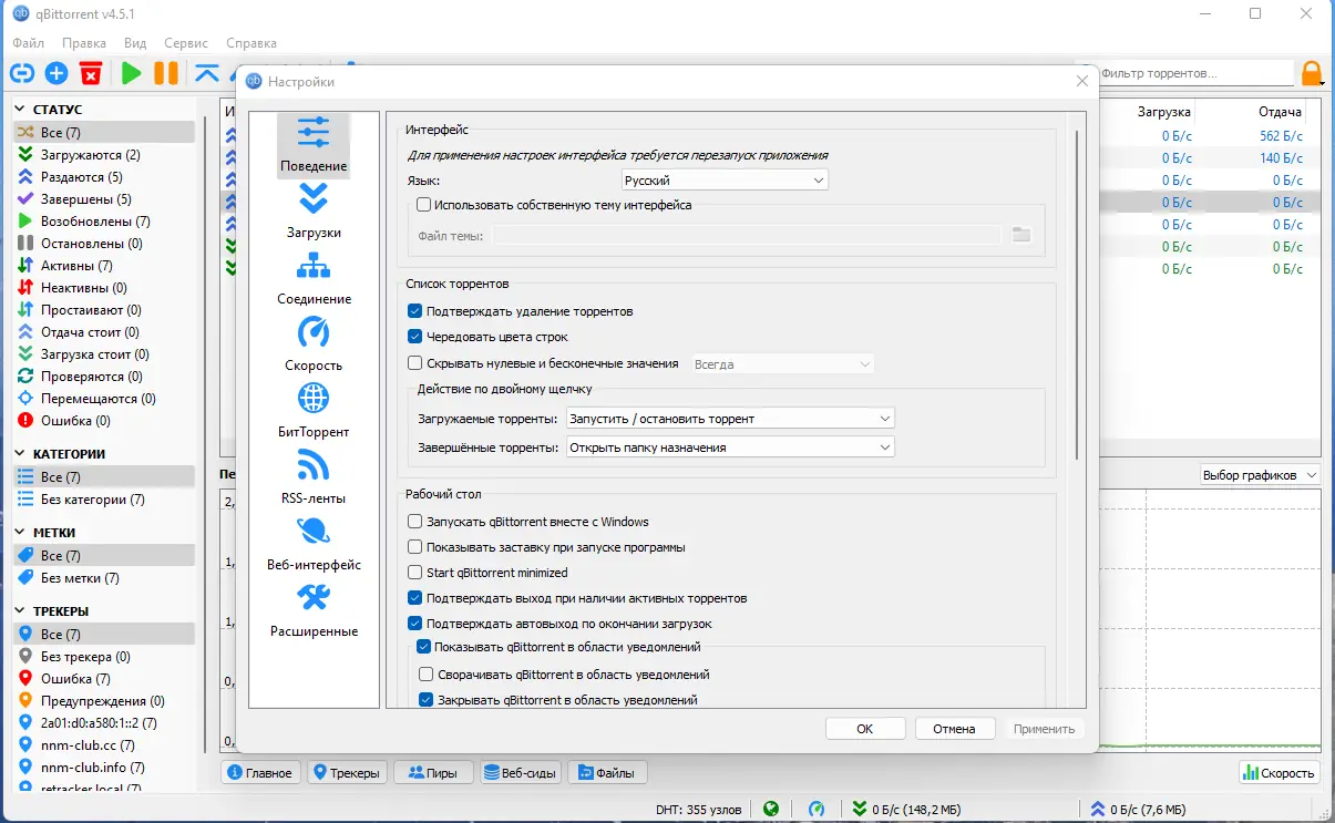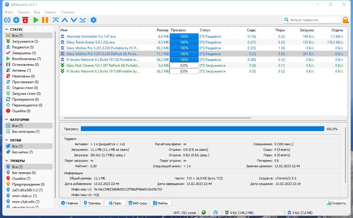- Поддержка UPnP, NAT-PMP, раздача через протокол HTTP и возможность выключения компьютера по завершению загрузки