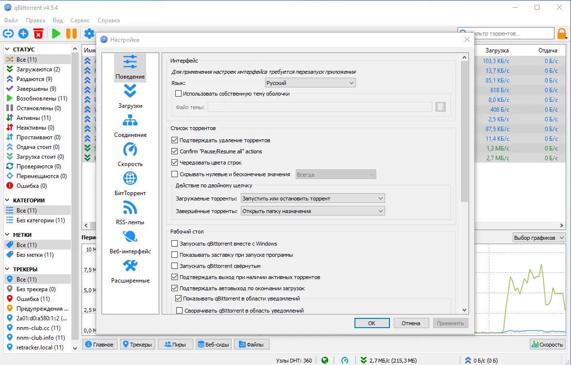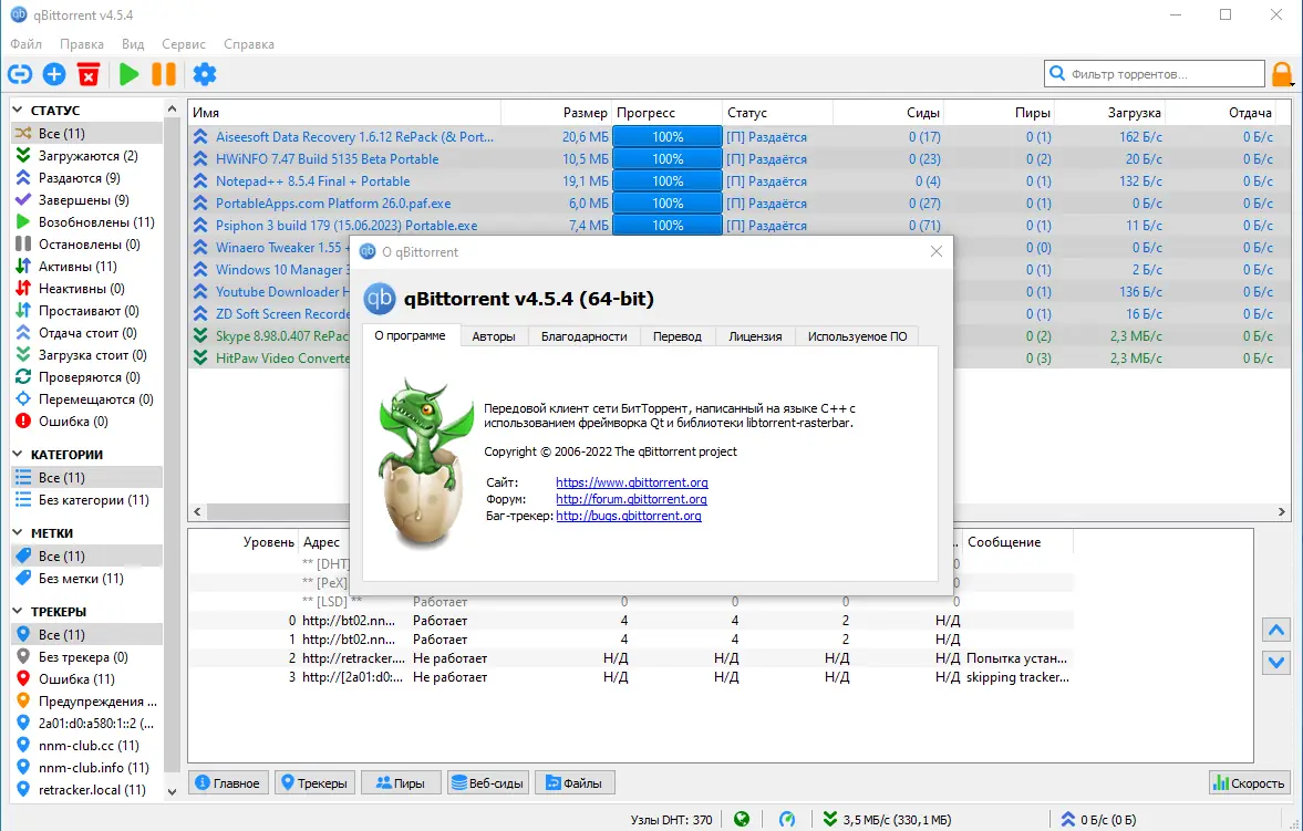 - Поддержка протоколов Web seed, обмен трекерами и мультитрекер