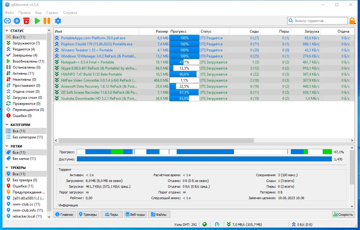 qBittorrent — это бесплатная и открытая программа для скачивания файлов через торрент-сети. Эта мощная и при этом простая в использовании утилита идеально подходит для пользователей, ищущих надежный инструмент для загрузки медиа, документов и других данных без рекламы и дополнительных затрат.