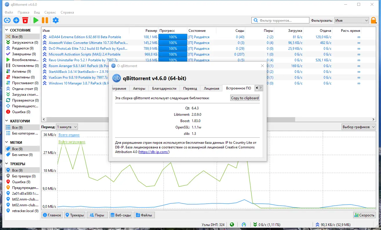 - Создание торрентов и расширенная поддержка RSS с фильтрами и регулярными выражениями