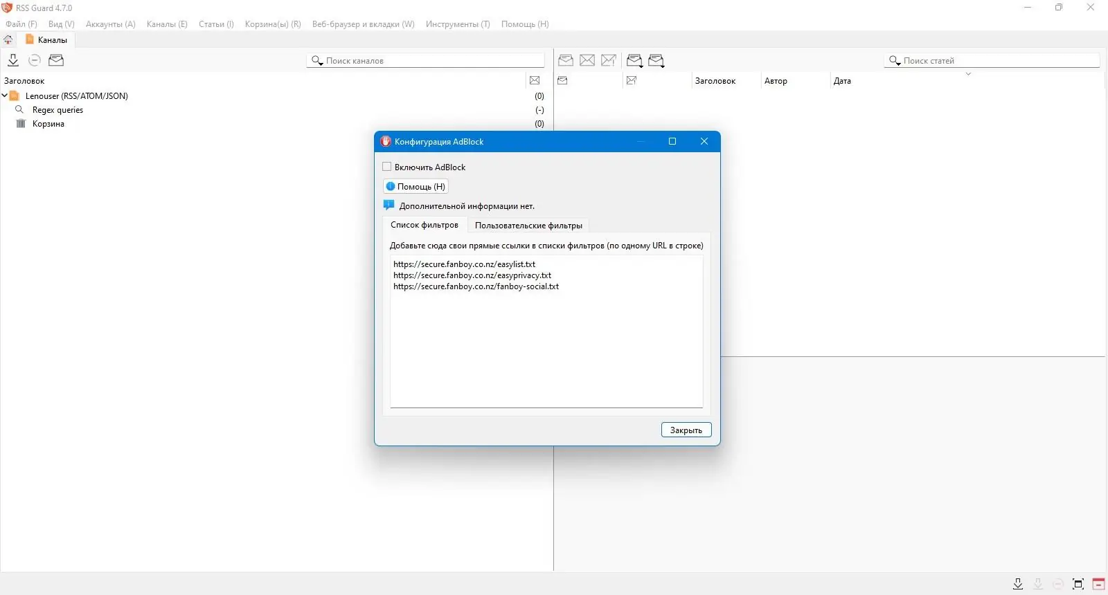 - Запустите исполняемый файл (rssguard.exe) и настройте программу под свои нужды.