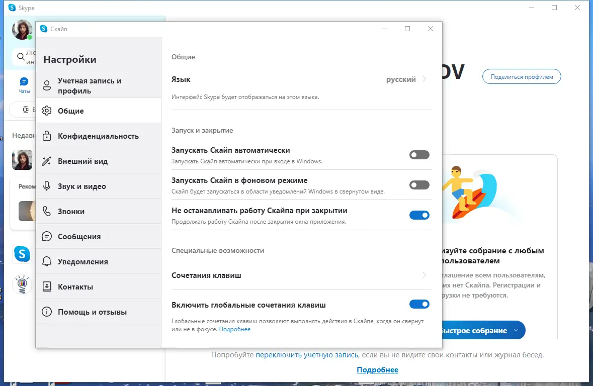 - Широкие возможности обмена файлами, экранами и контактами.