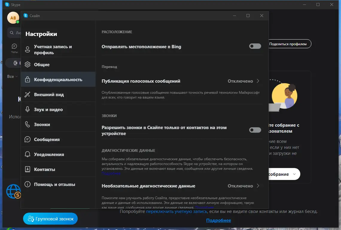 - Ответ на вызовы с любого устройства, использование номера Skype для получения звонков.