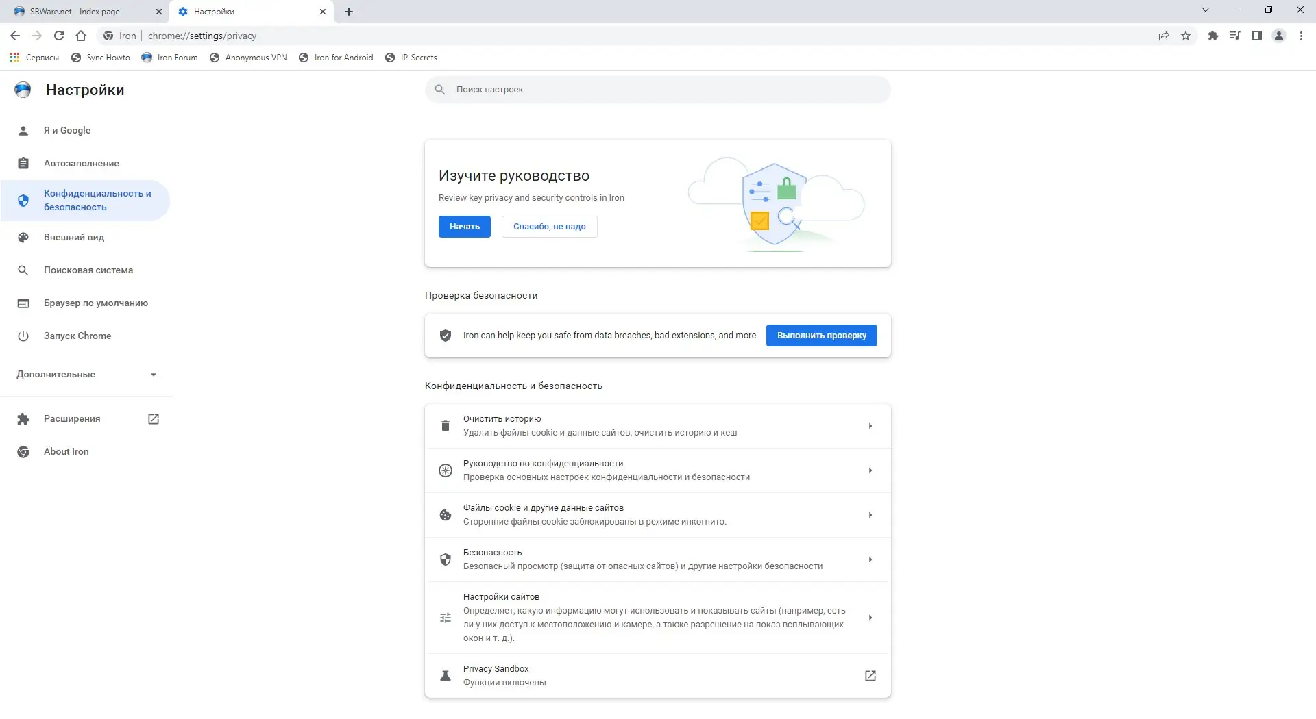 SRWare Iron — это безопасный, быстрый и удобный браузер на базе исходного кода Chromium. Он обладает интерфейсом и функционалом, знакомыми пользователям Google Chrome, при этом придерживается строгой политики конфиденциальности, исключая любые «следящие» модули и функции, присущие браузеру от Google. Благодаря этому браузер обеспечивает максимально возможную приватность и безопасность при серфинге в интернете.