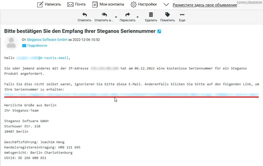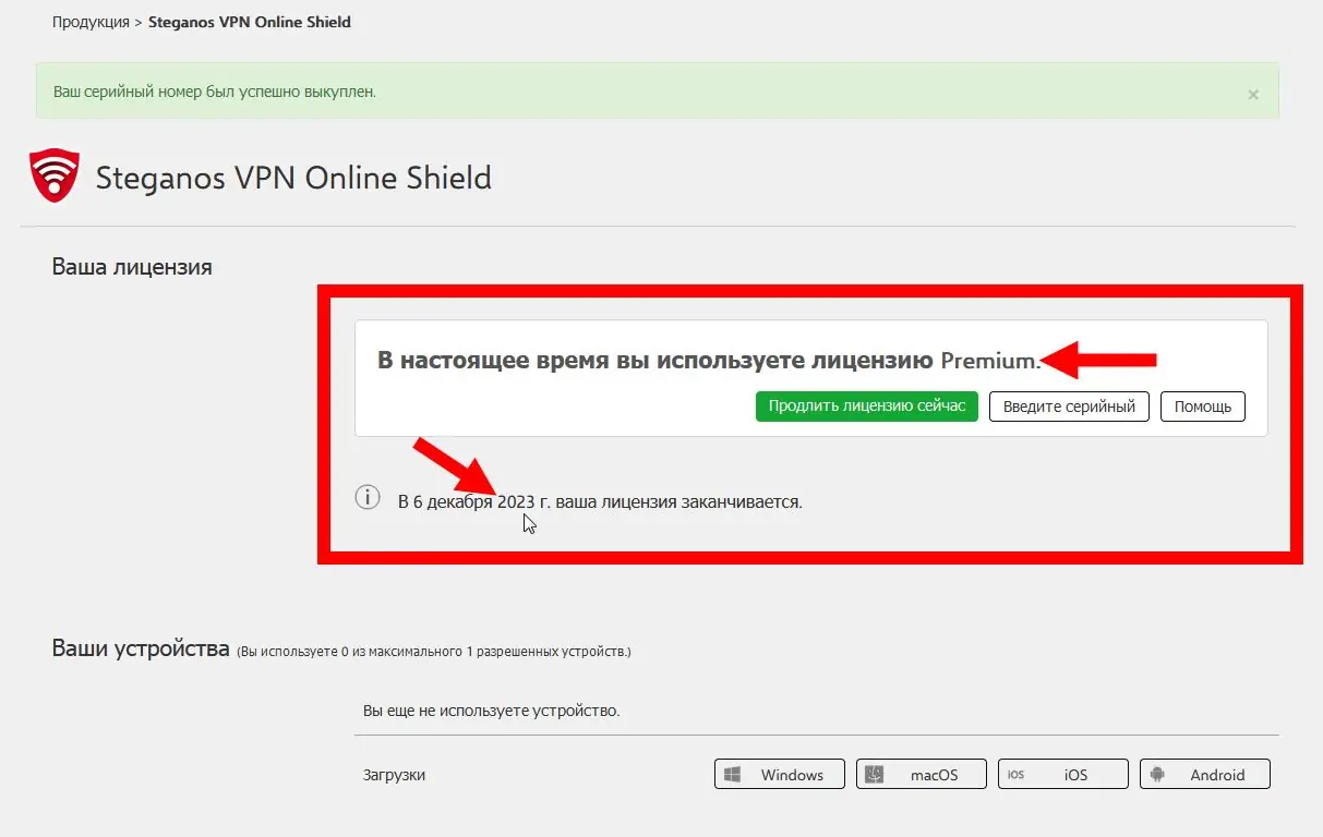 - После получения серийного номера активируйте лицензию на своей учетной записи mySteganos и установите программу на устройство.