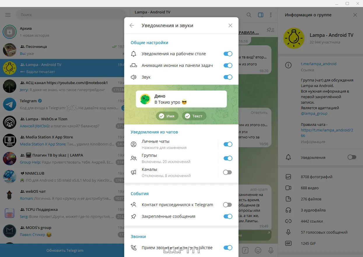 Telegram Desktop — это мощный кроссплатформенный мессенджер, известный высокой скоростью и уровнем безопасности. Он позволяет синхронизировать все сообщения между вашими устройствами, включая смартфоны, планшеты и компьютеры, с помощью облачной базы данных объемом 1,5 ГБ. В приложении можно обмениваться не только текстами, но и фотографиями, видео, файлами любого типа, а также создавать групповые чаты до 200 участников. Благодаря использованию современных технологий шифрования и механизмам автоматической очистки переписки, Telegram обеспечивает конфиденциальность и безопасность ваших данных. Полностью бесплатный без рекламы, он подходит для личного и бизнес-общения.