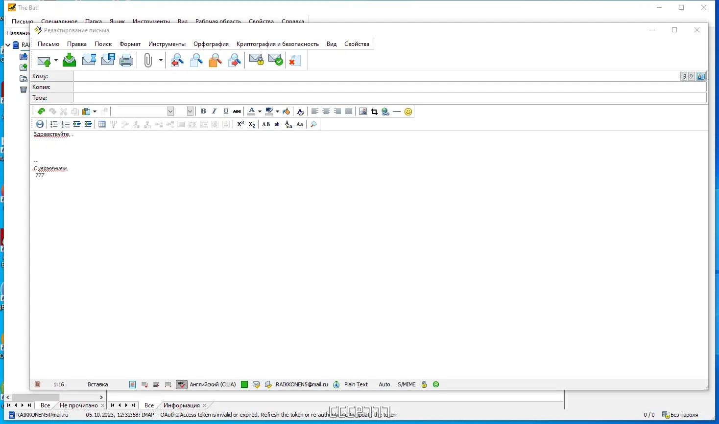 Программа The Bat – это мощный и безопасный почтовый клиент, обладающий широкими возможностями автоматической обработки электронных писем и высокой степенью защиты личных данных. Интуитивный интерфейс позволяет начать работу сразу после установки, а продвинутые механизмы фильтрации и сортировки помогают эффективно управлять большими потоками входящей почты. Благодаря уникальной системе автоматической обработки, настройки шаблонов и автоматических правил, программа значительно сокращает время на рутинные задачи. Возможность установки в пакетном режиме и полная совместимость с системой Windows делают её незаменимым инструментом для опытных пользователей и системных администраторов.