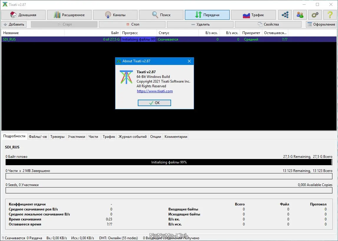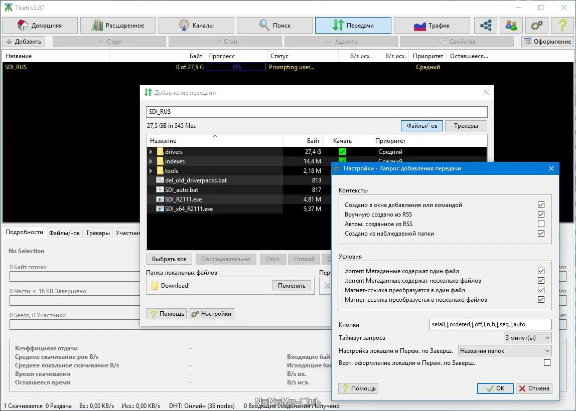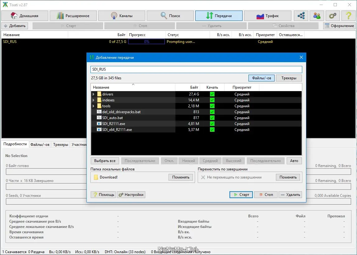 - Настраиваемый алгоритм выбора пиров, режим начальной раздачи и приоритезация загрузки.