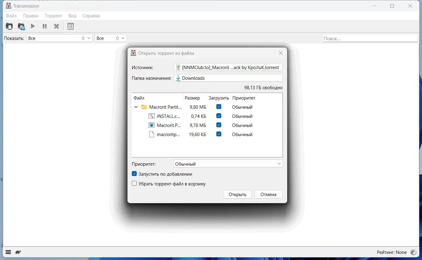 Обеспечивая легкий и без излишеств опыт использования, Transmission идеально подходит для тех, кто ценит функциональность без лишних усложнений и хочет максимально эффективно использовать системные ресурсы.