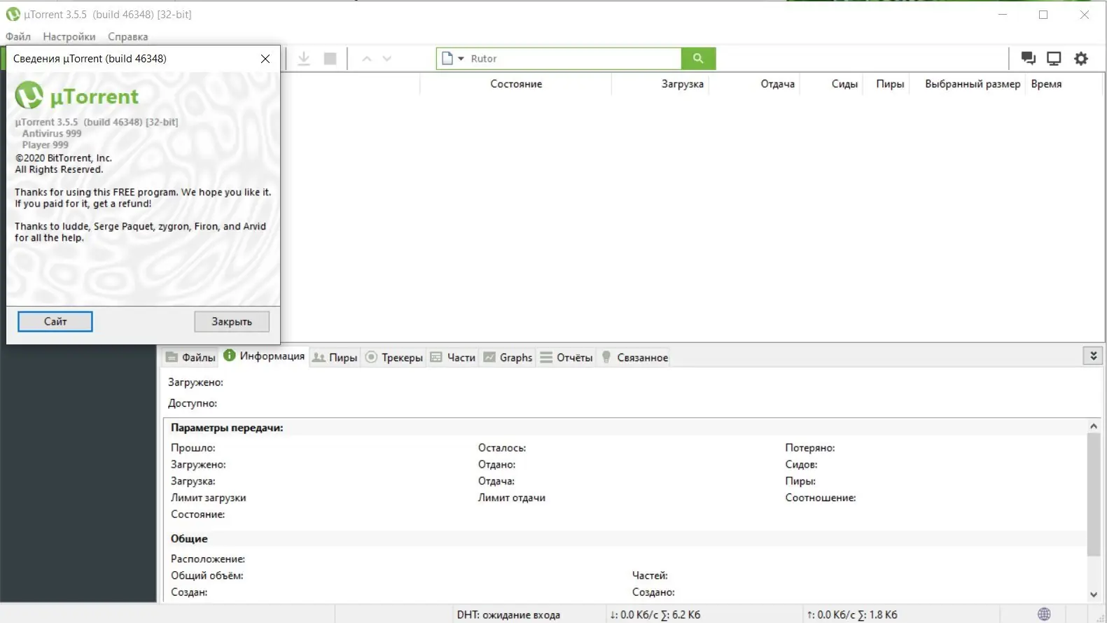 Важно: при желании сохранить настройки и темы, рекомендуется предварительно подготовить соответствующие файлы из папки uTorrentPrefs и разместить их в папке с программой перед запуском.