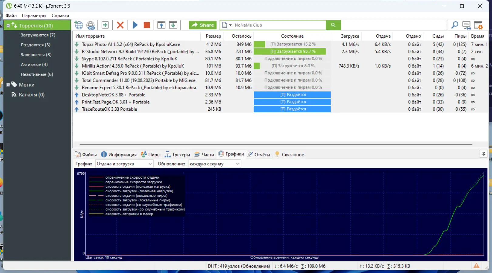 Бесплатный клиент для обмена файлами по протоколу BitTorrent, совместимый с Windows 7, 8/8.1, 10, 11 и работающий в 32 и 64 битных версиях. Поддерживает параллельные загрузки, настройку скорости и удалённое управление через web-интерфейс.