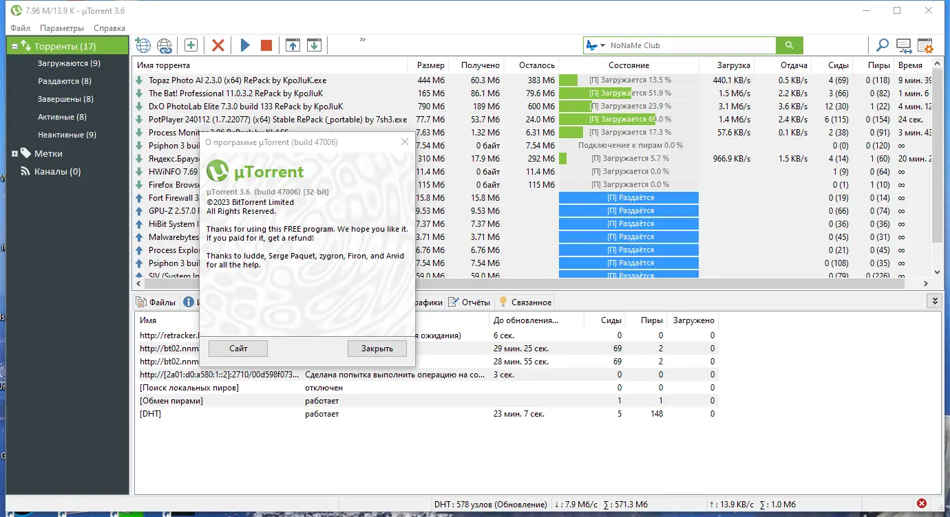 Бесплатный клиент пиринговых сетей по протоколу BitTorrent, обладающий множеством функций и компактным размером, позволяет легко и быстро скачивать и раздавать файлы через интернет.