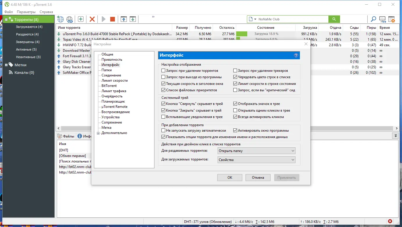 - Управление приоритетами трафика и регулировка скорости загрузки/раздачи
