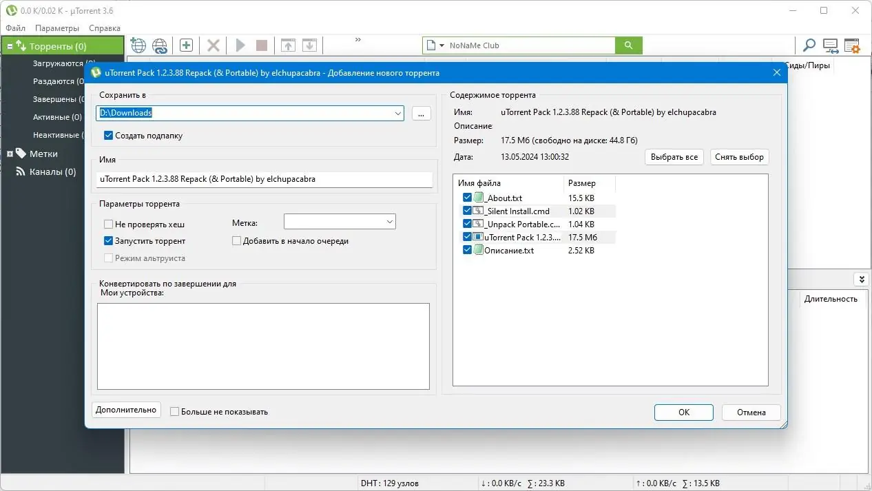 Сборка uTorrent представляет собой универсальный репак, включающий версии 1.8.5, 2.0.4, 2.2.1, 3.4.8, 3.5.5 и 3.6.0, что позволяет выбрать наиболее подходящую под ваши требования. В репаке реализованы опции автоматической установки или распаковки портативной версии, а также возможность отключения серверов обновлений и рекламных модулей для повышения приватности и стабильности работы. Встроенные функции включают поддержку RSS-ленты, шифрование протокола, приоритет трафика, совместимость с NAT-PMP/UPnP и взаимодействие с другими клиентами без необходимости наличия трекеров благодаря протоколам DHT и PEX. Операционная система не важна — программа работает под Windows 7, 8/8.1, 10 и 11, а также в Linux через Wine. В репаке предусмотрены возможности добавления пользовательских фильтров IP и выбора скинов, что делает управление более удобным и кастомизированным.